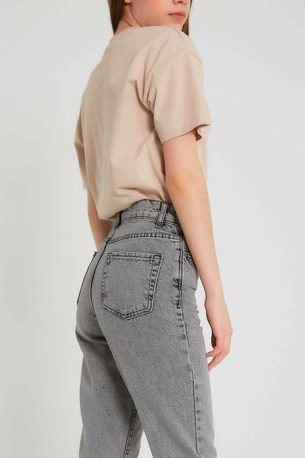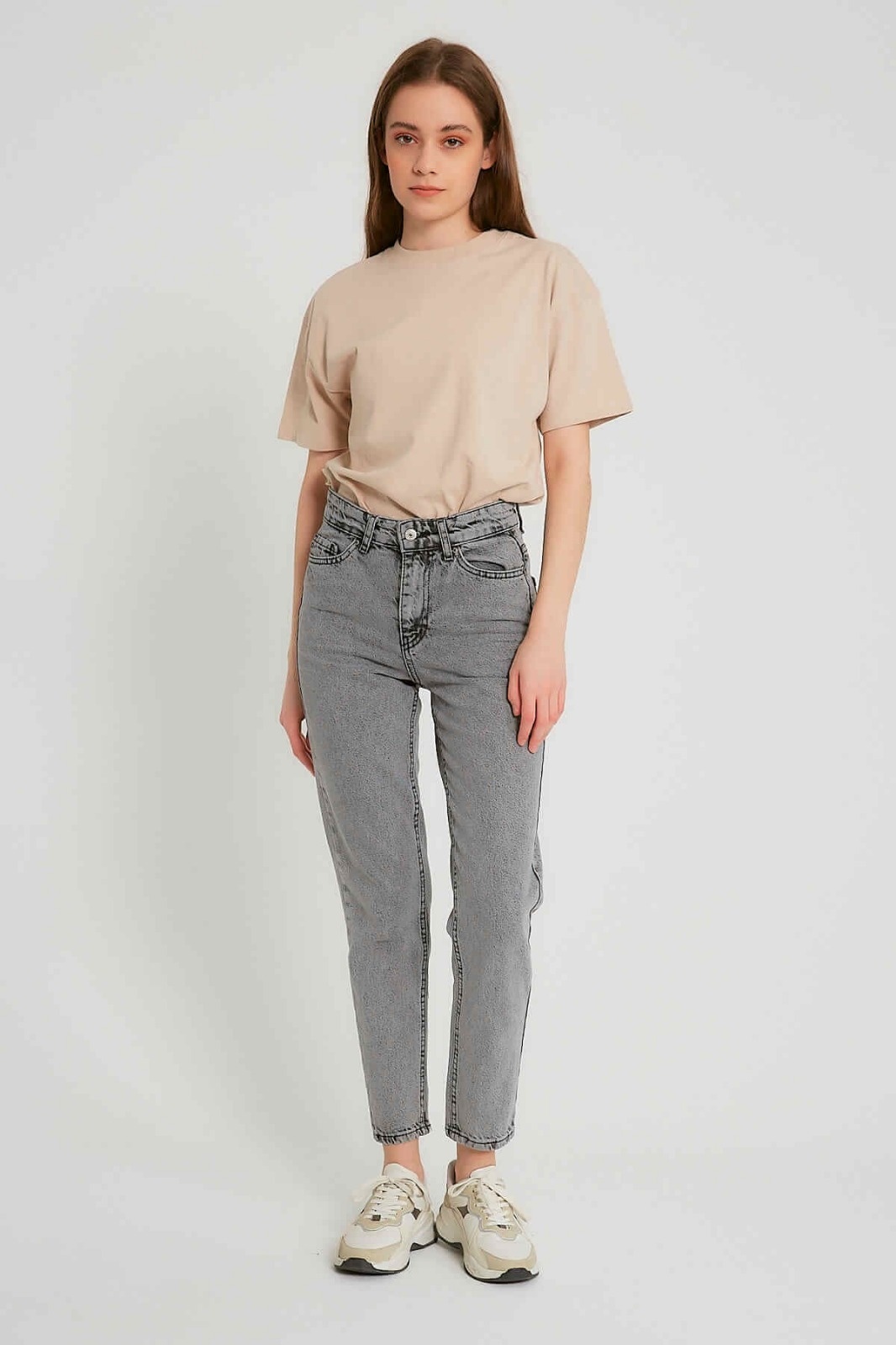 Basic-Jeans mit hoher Taille - D83607 - Grau
