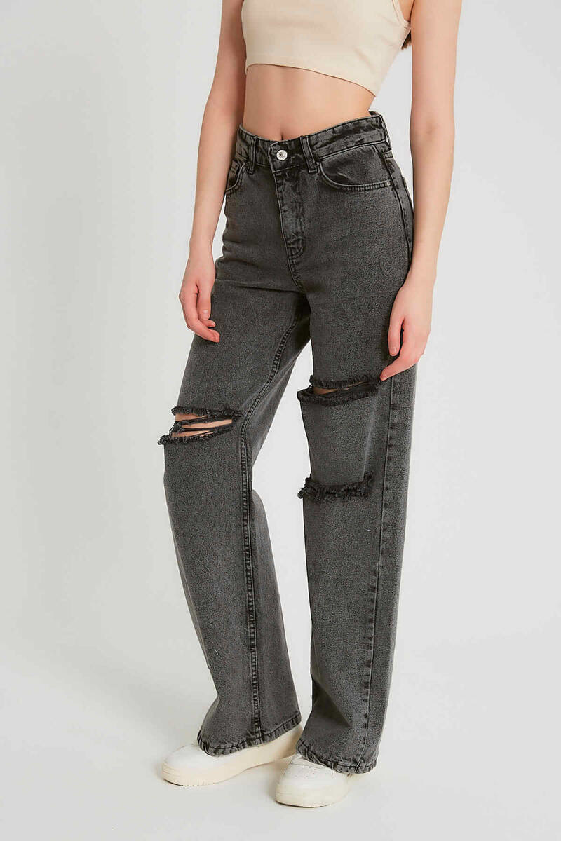 Basic Jeans mit hoher Taille - D83611 - Schwarz/Grau