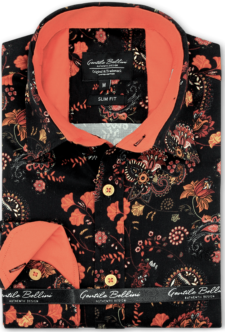 Bloemen Shirt Mannen Slim Fit - 3100 - Schwarz