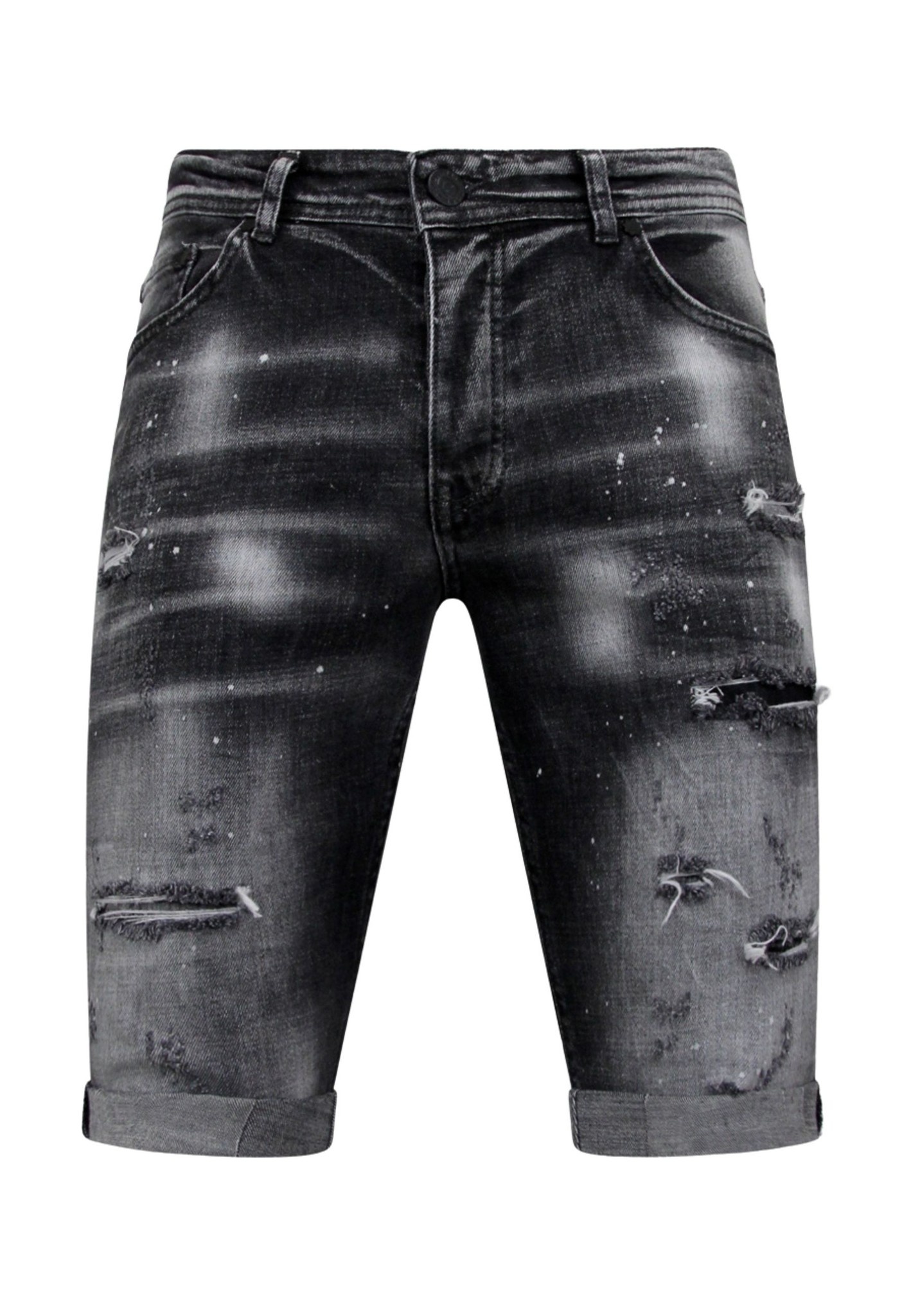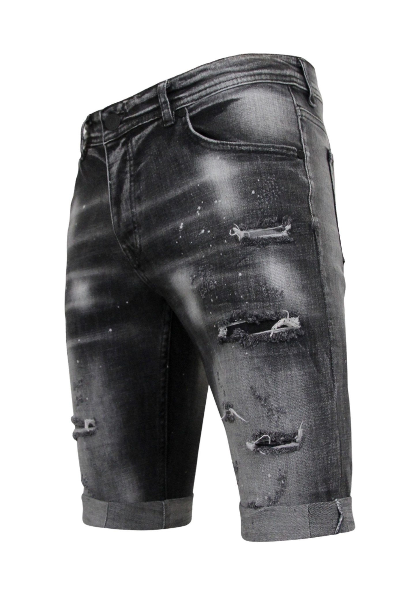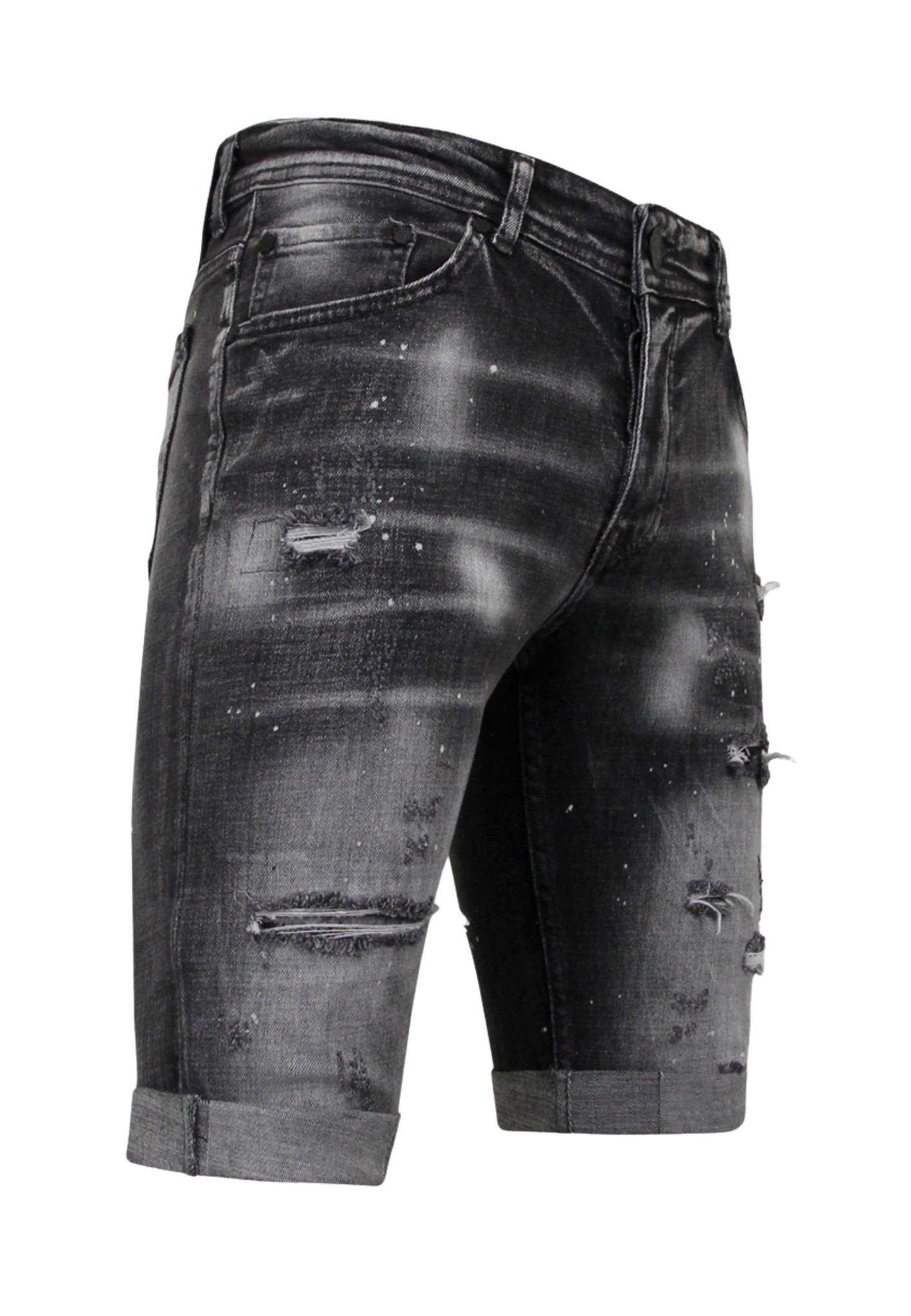 Distressed Short Stonewash Herren - Slim Fit -1087- Schwarz