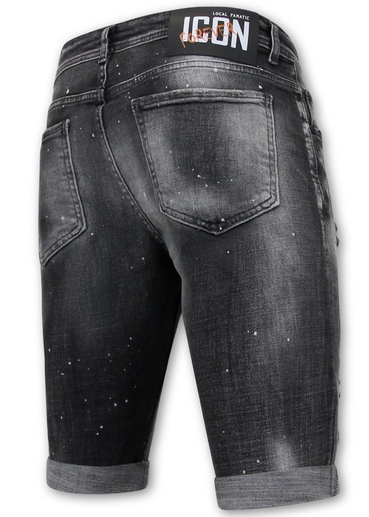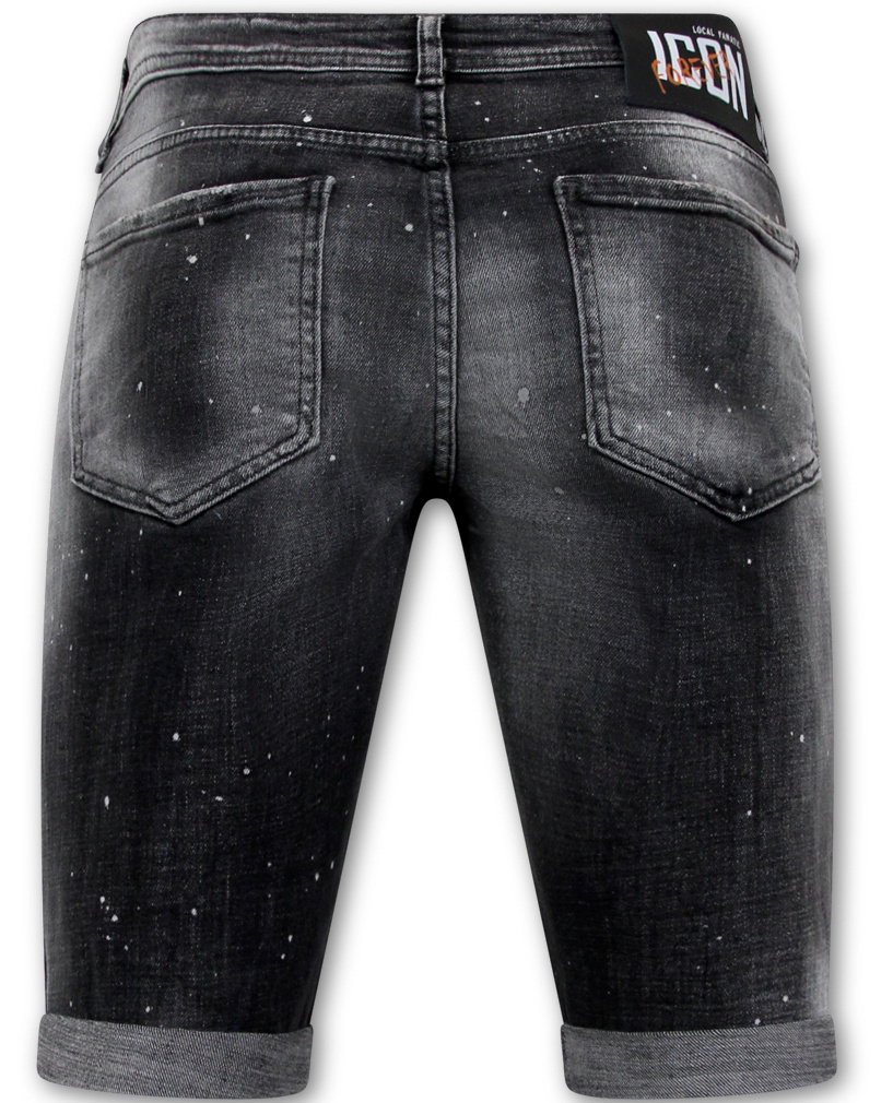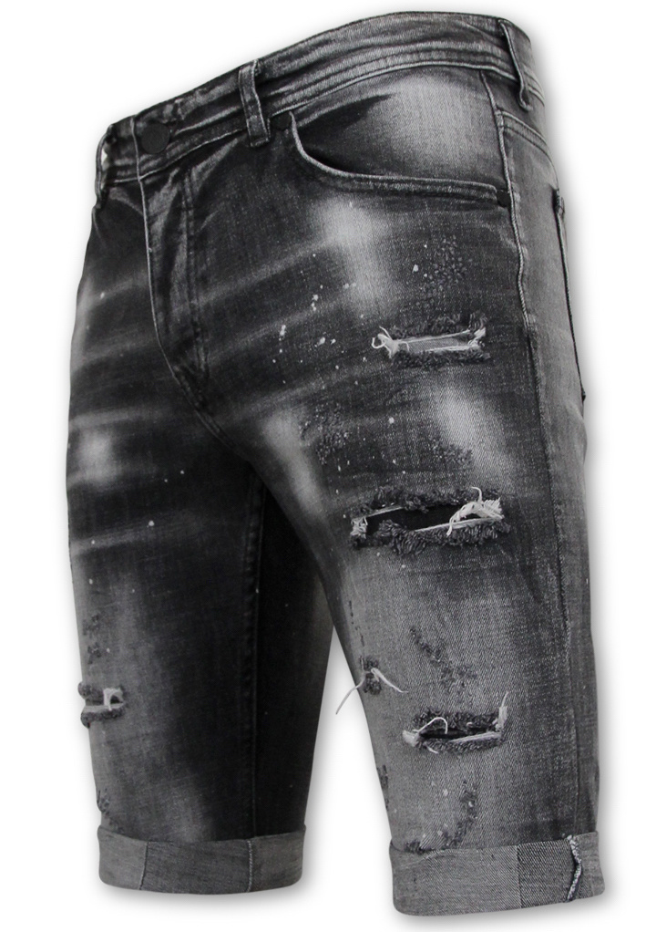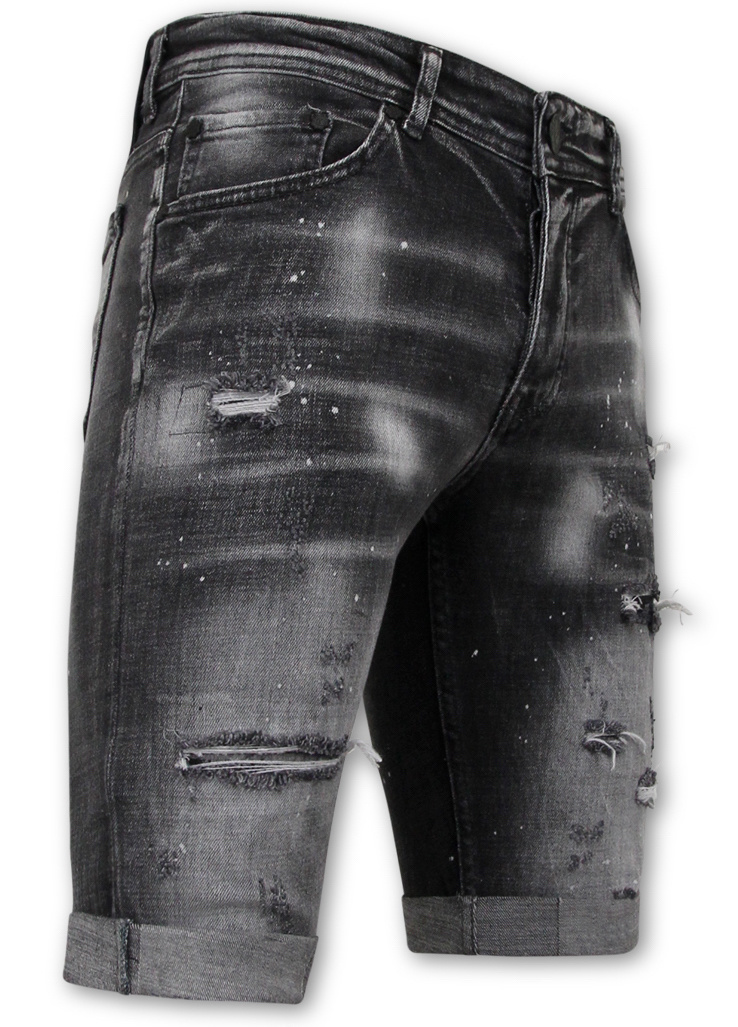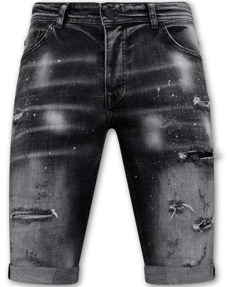 Distressed Short Stonewash Herren - Slim Fit -1087- Schwarz