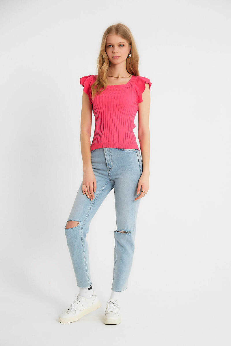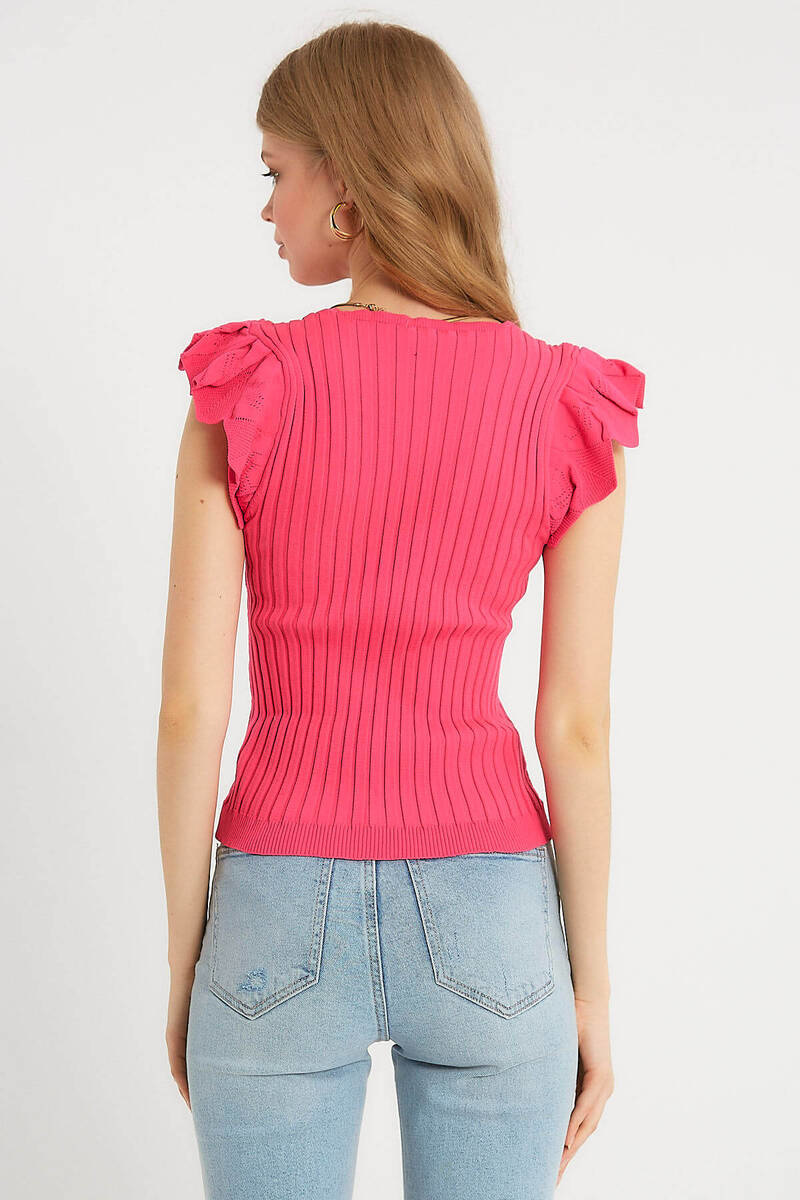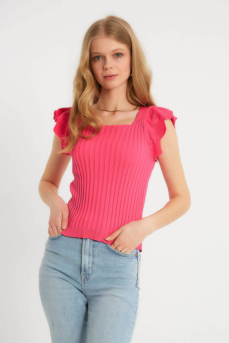 Elastisches Rippentop für Damen – T93547 – Rosa