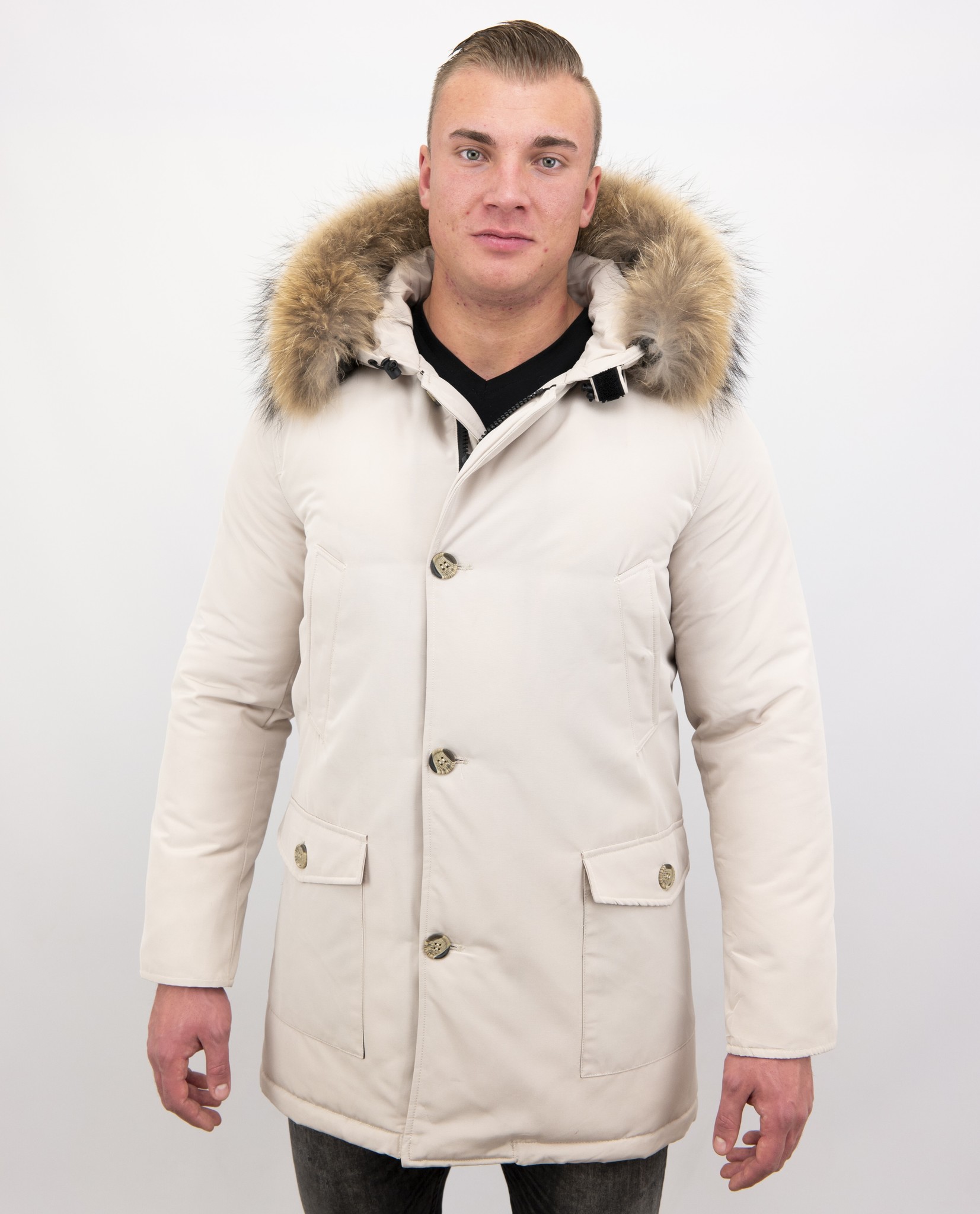 Heren Jacken mit Fellkragen -Große Pelzkragen - Beige
