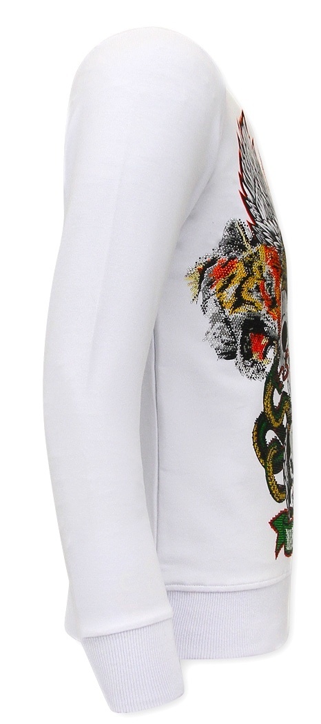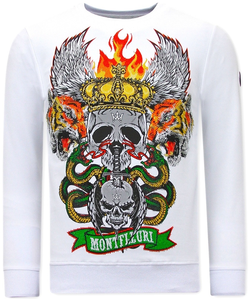 Heren Sweater met Print - Skull Head - 3662 - Wit