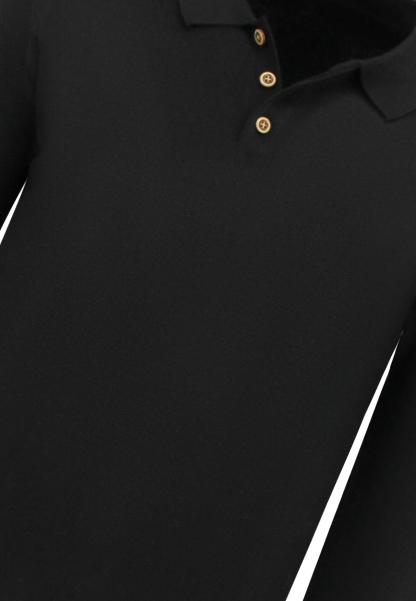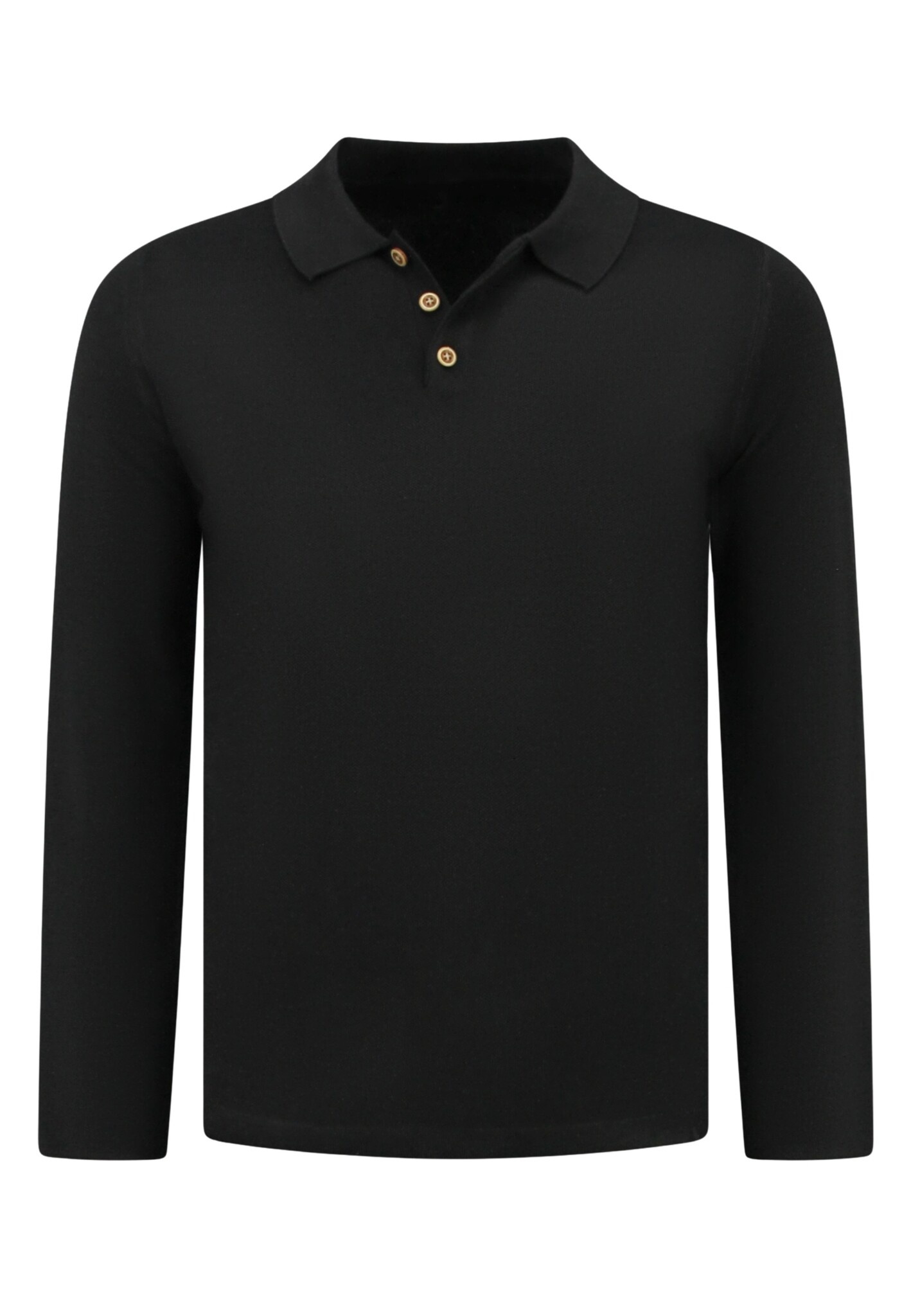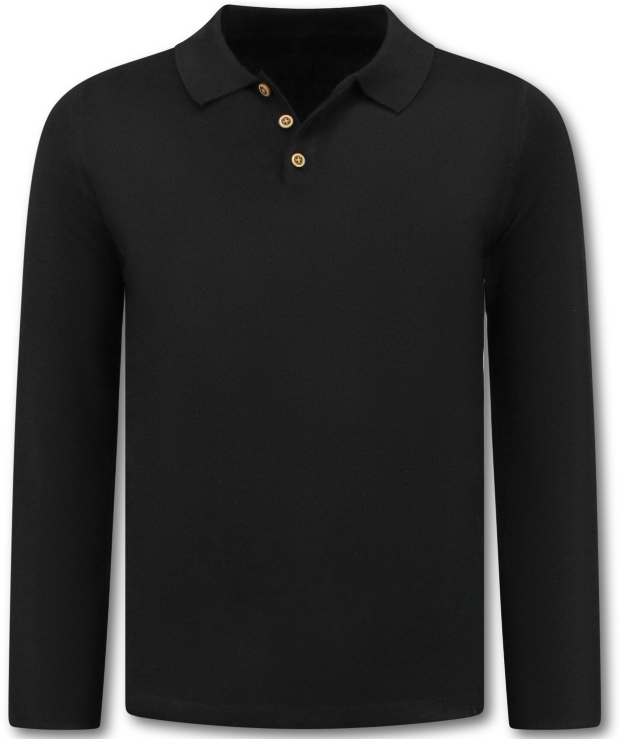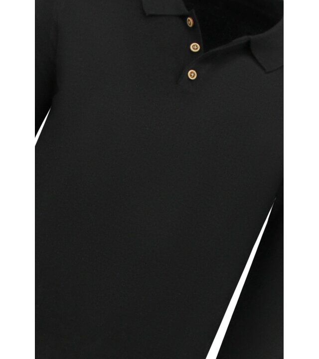 Herrenpullover - Herren Langarm Poloshirt - 536 - Schwarz