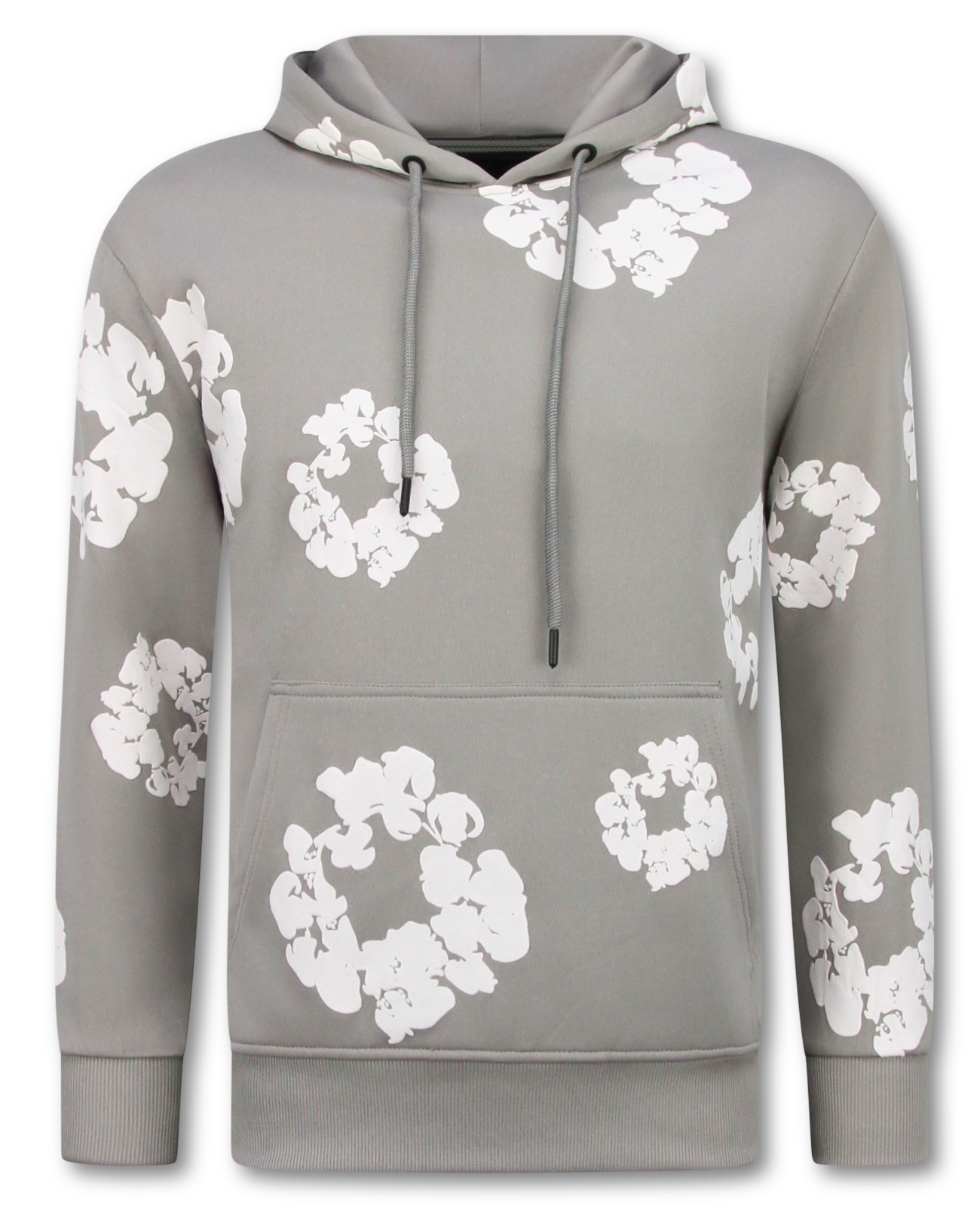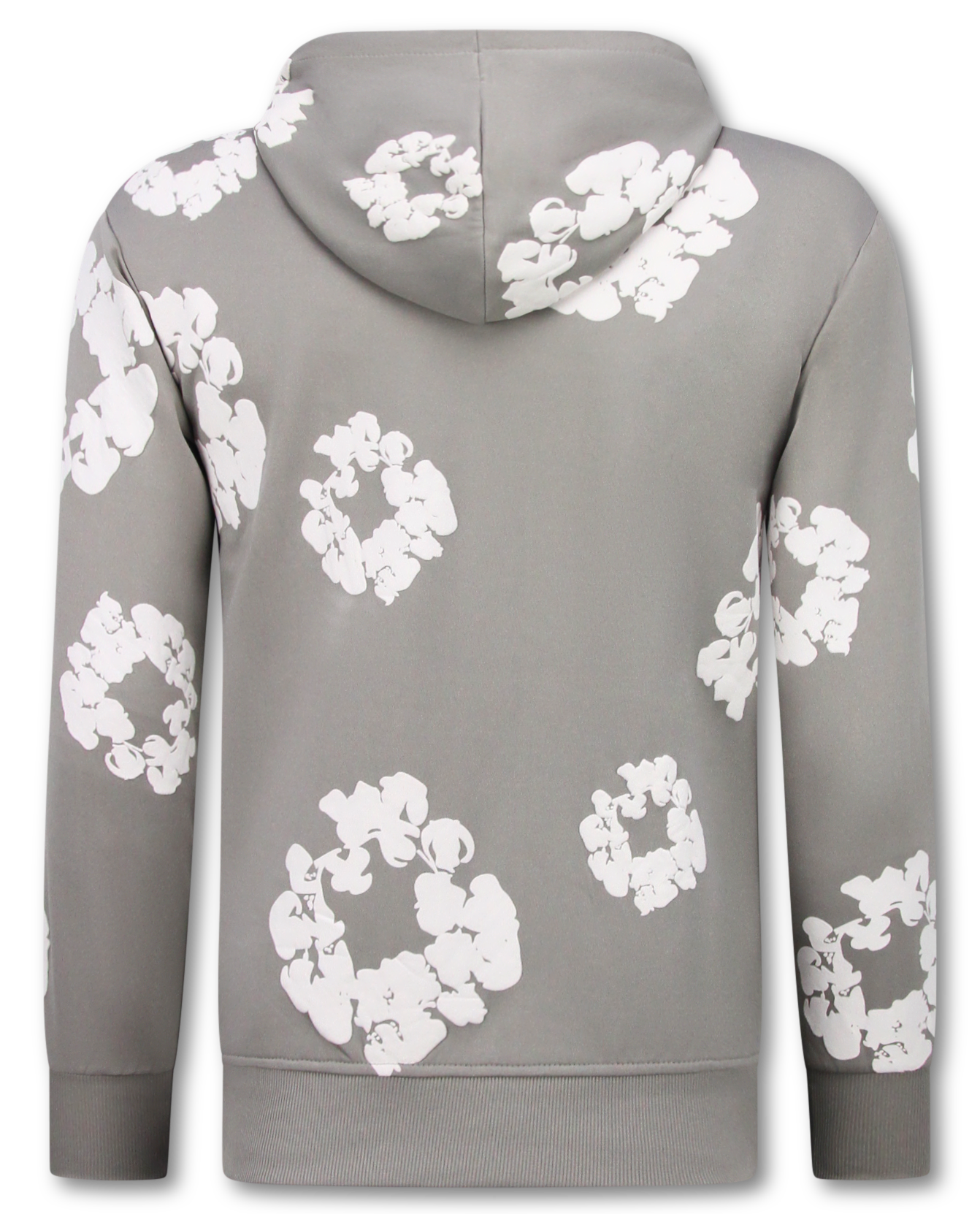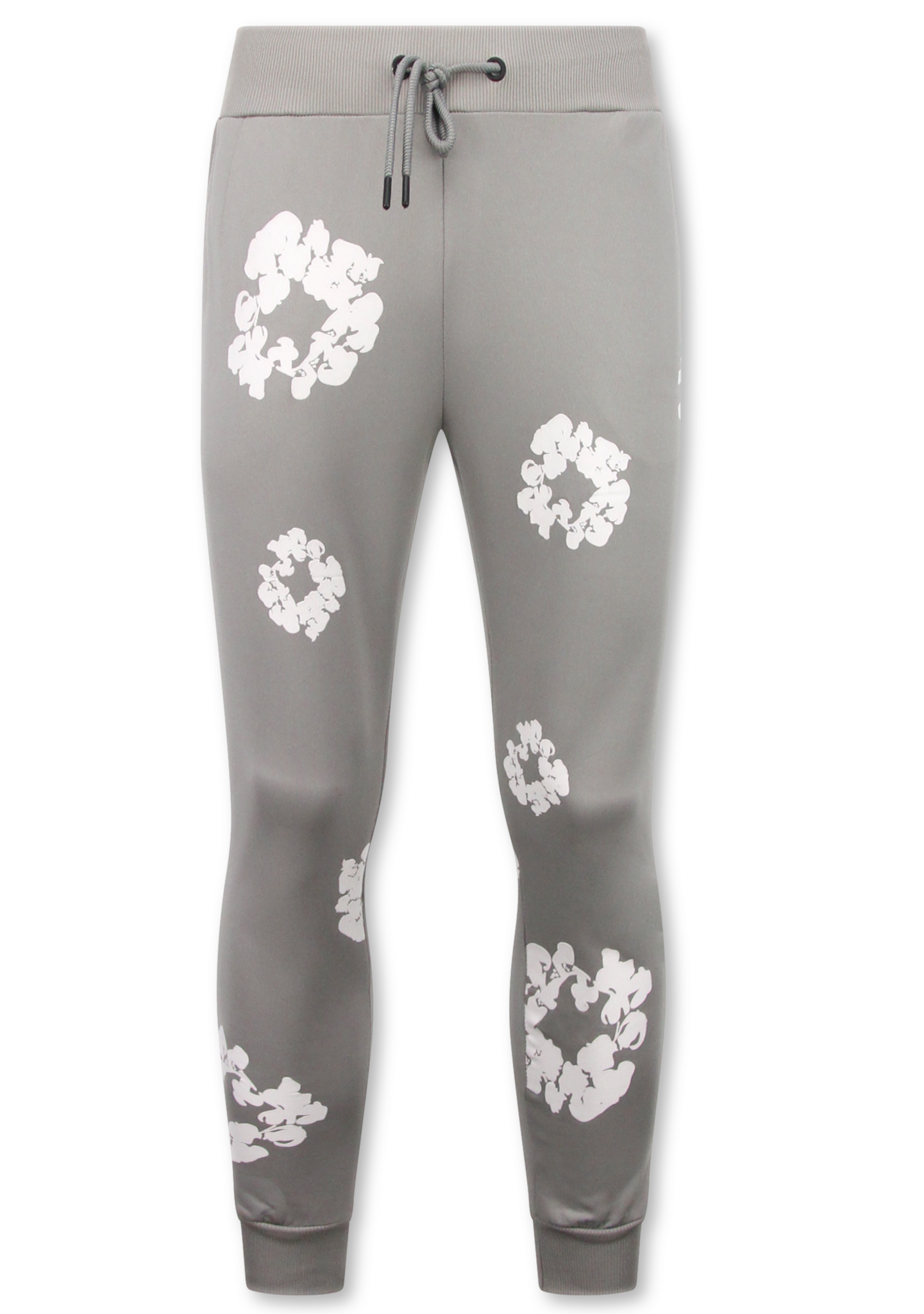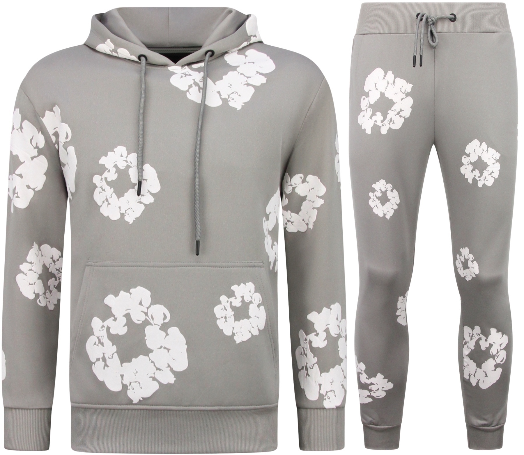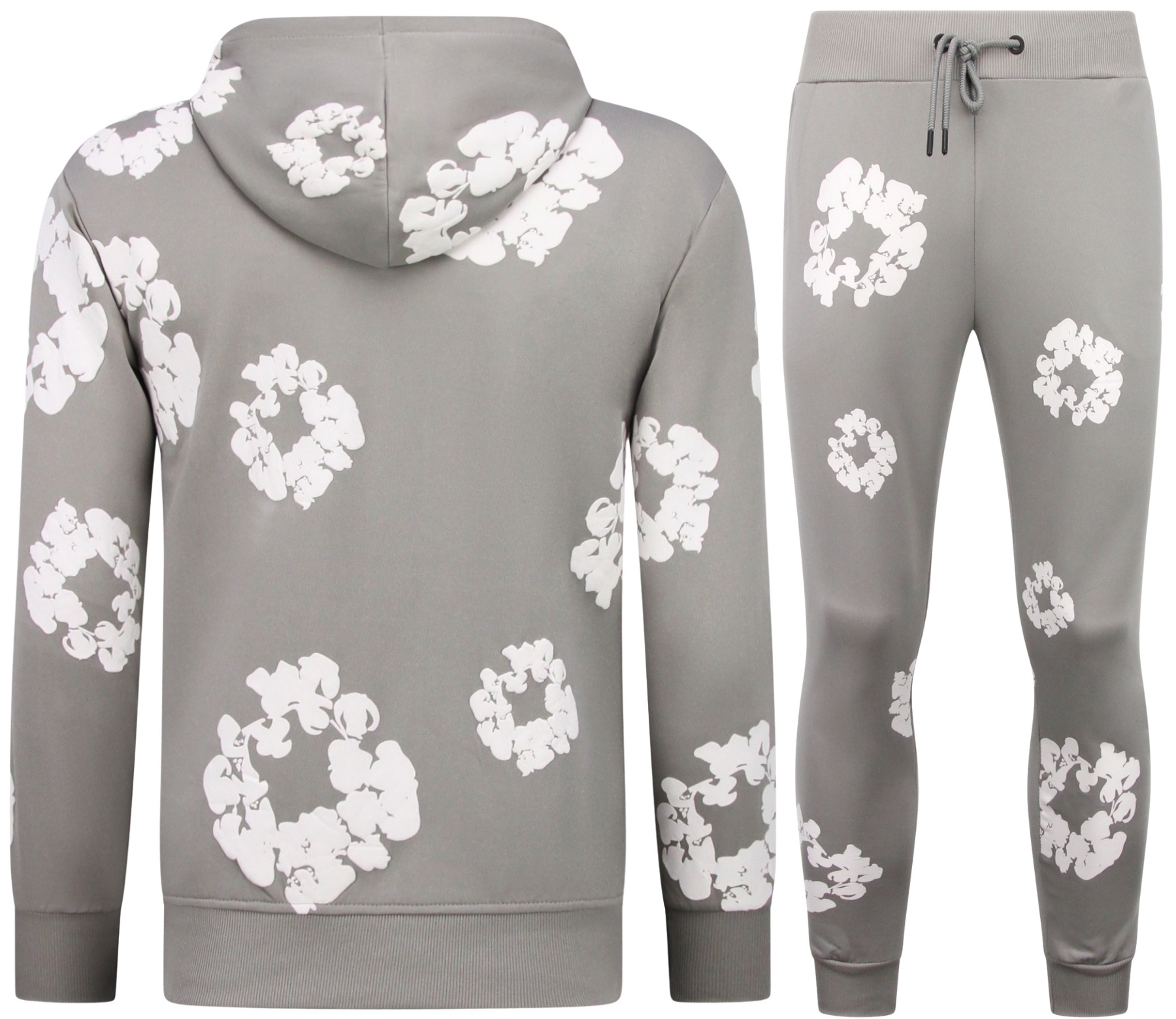 Dick gewebter Herren Trainingsanzug mit Allover Blumenmuster – Herren Blumenanzug – Twinset – 5991 – Grau