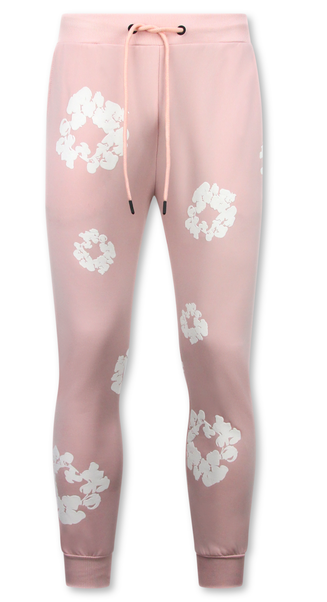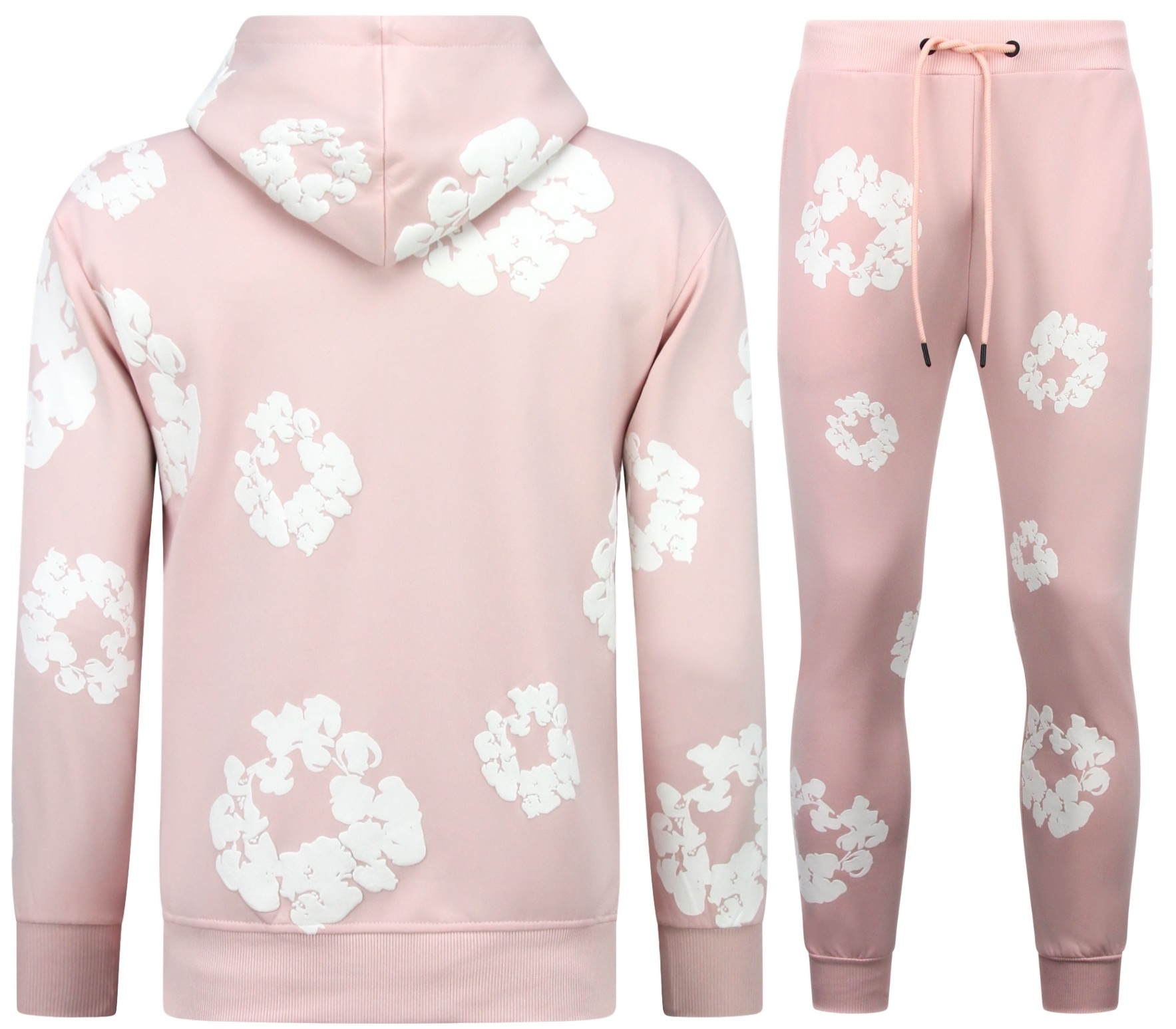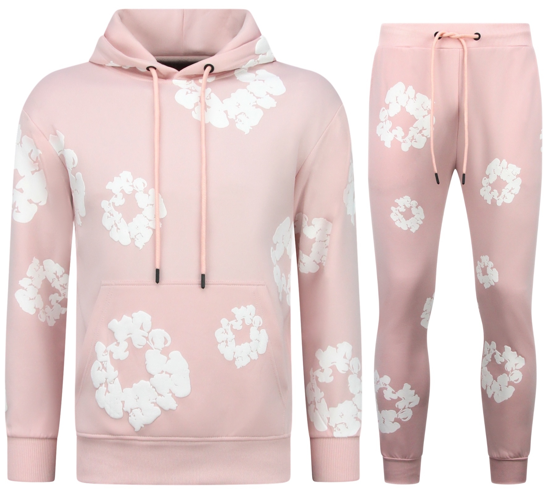 Dick gewebter Herren Trainingsanzug mit Allover Blumenmuster – Herren Blumenanzug – Twinset – 5991 – Rosa