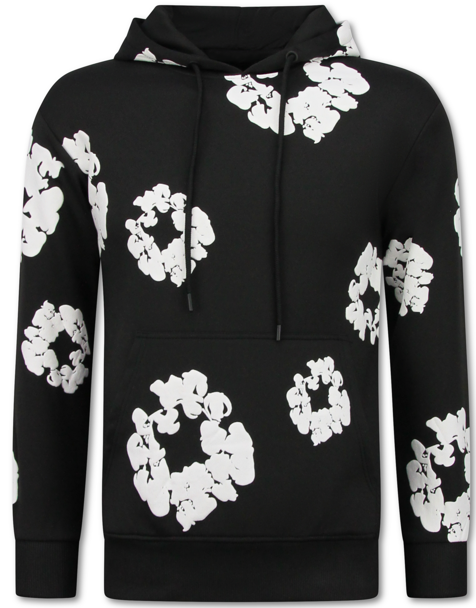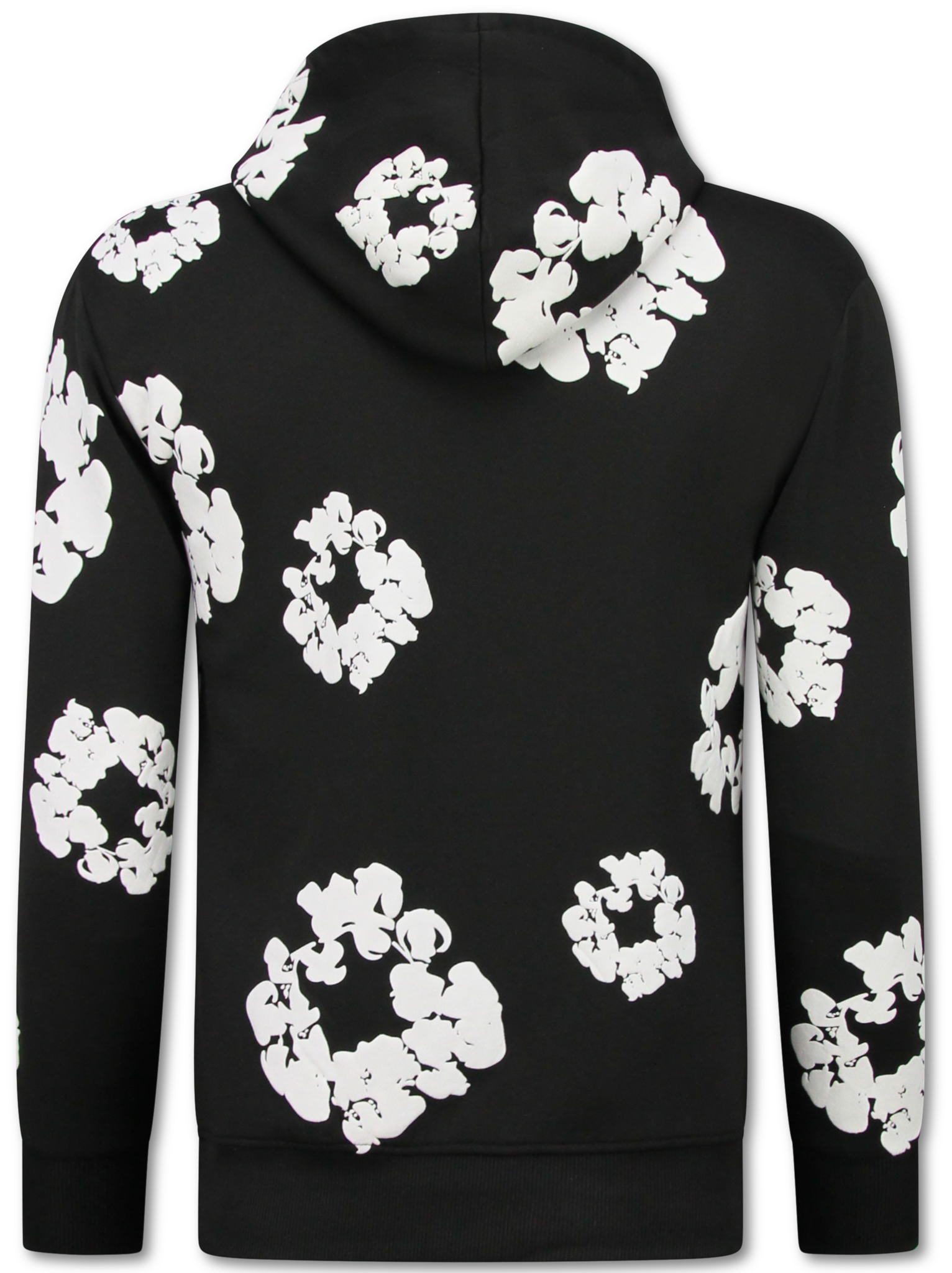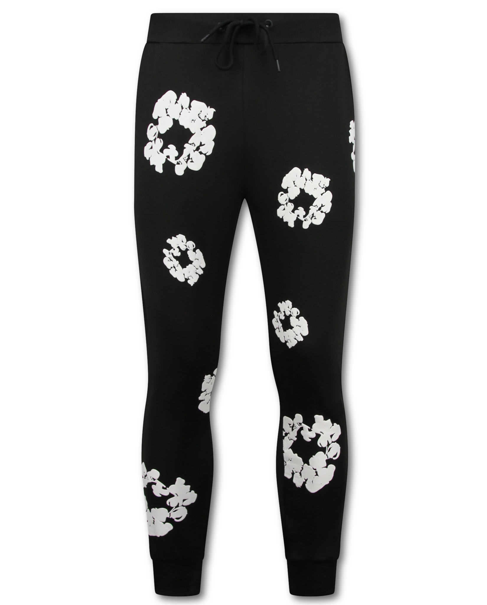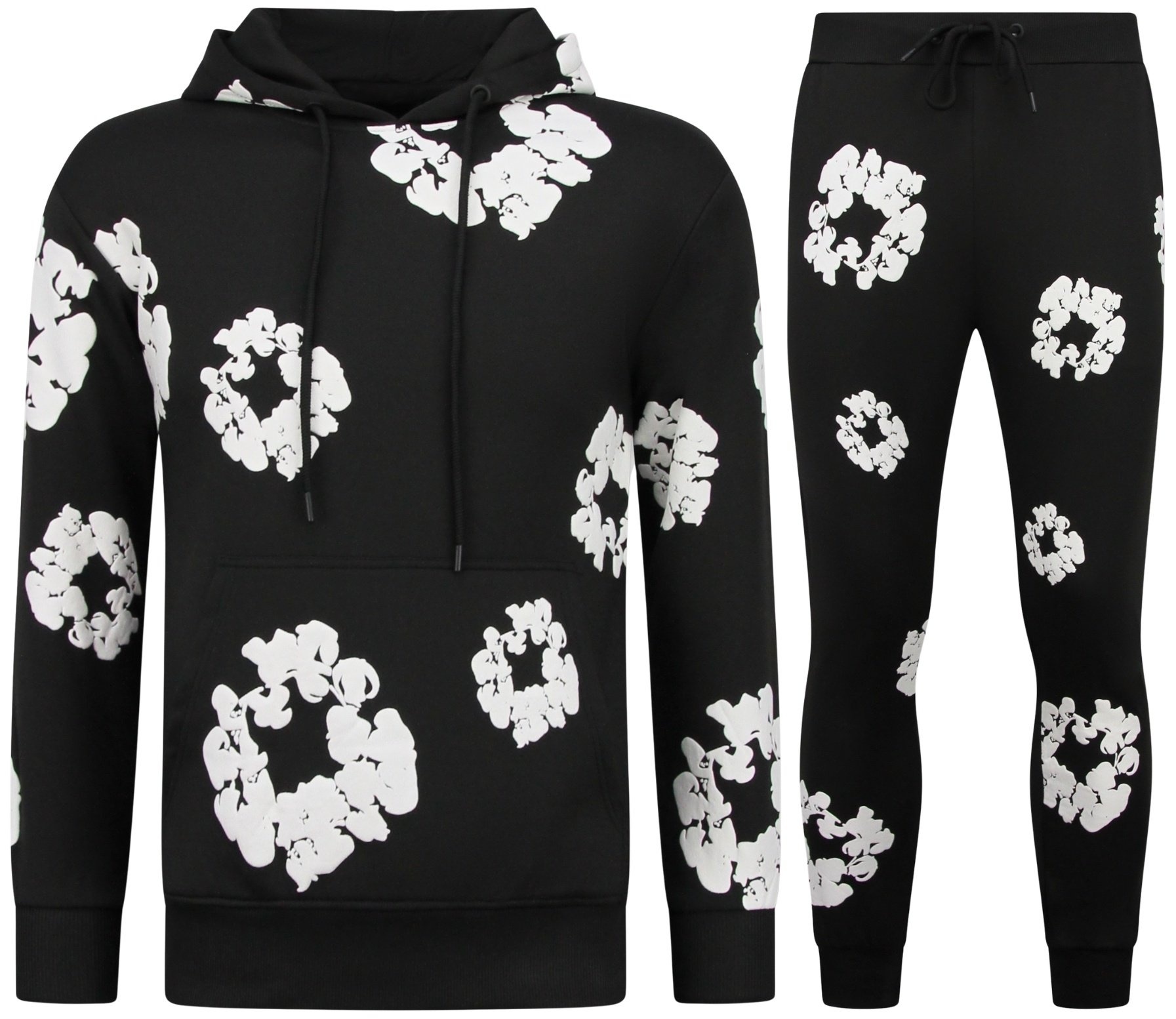 Dick gewebter Herren Trainingsanzug mit Allover Blumenmuster – Herren Blumenanzug – Twinset – 5991 – Schwarz