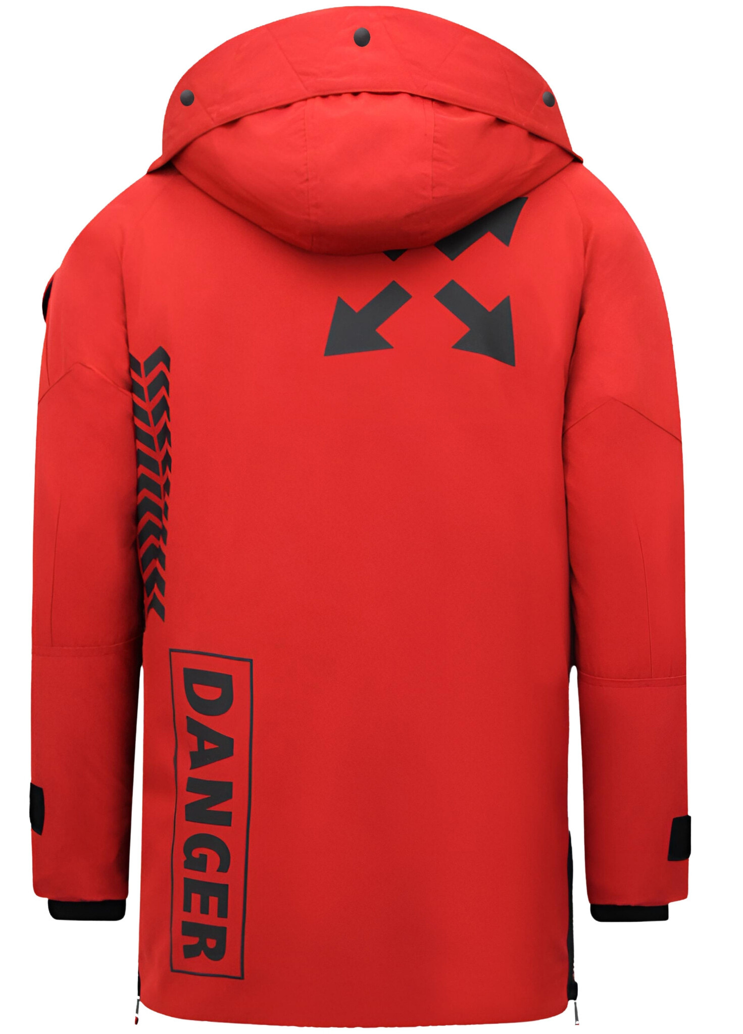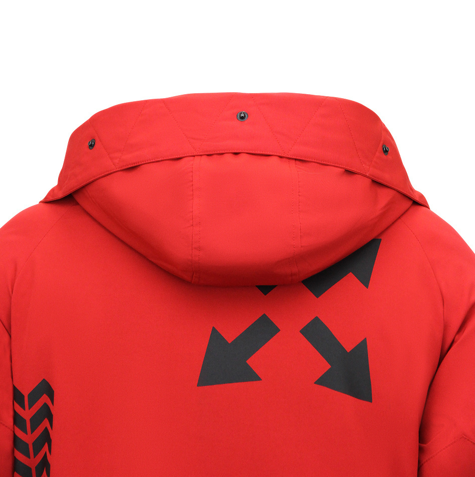Vorgedruckte Knöpfe/Reißverschluss an der Kapuze.