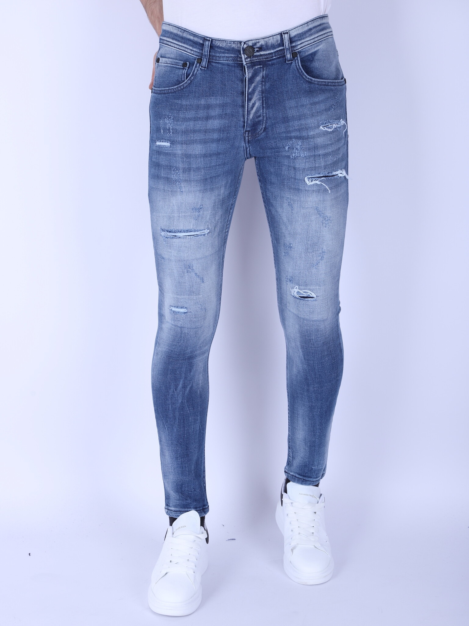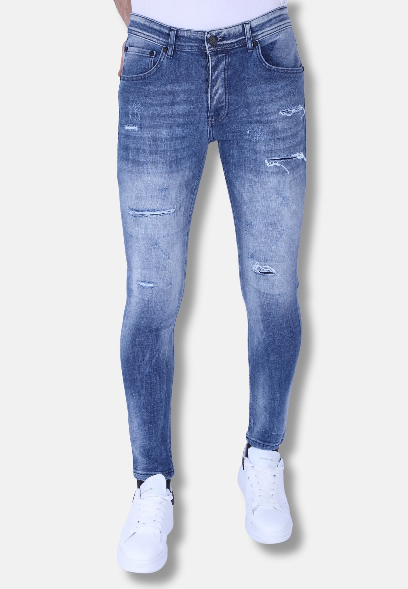 Herrenjeans Slim Fit mit Rissen - 1095 - Blau