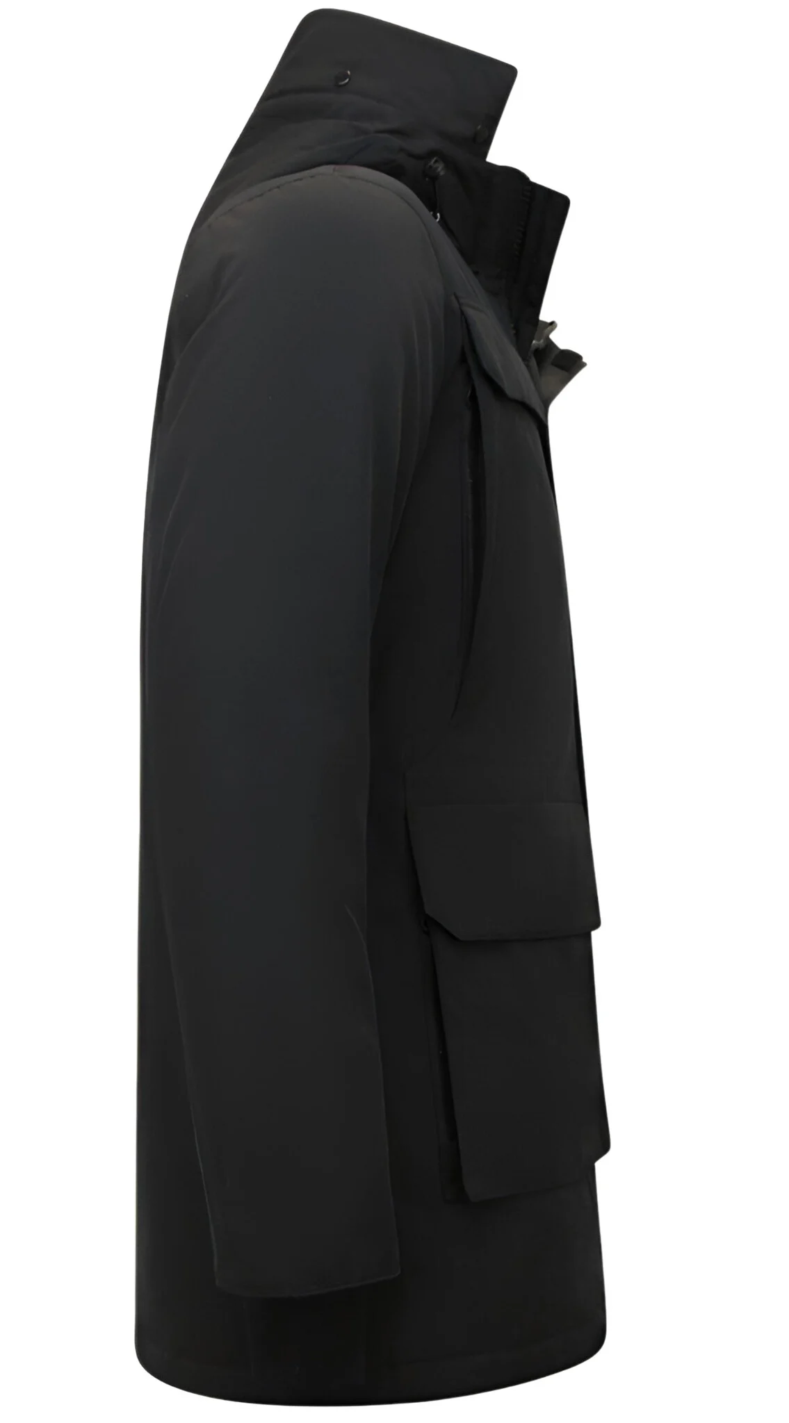Das Modell hat 4 Jackentaschen und eine Innentasche