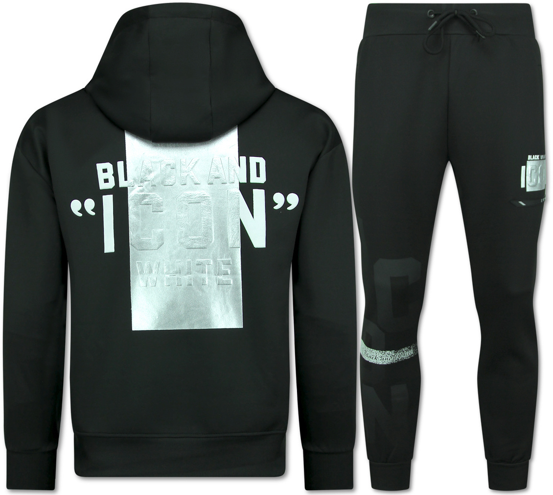 ICON Hoodie Silver Print - Jogginganzug Herren Erwachsene - Trainingsanzüge Herren - 3789 - Schwarz