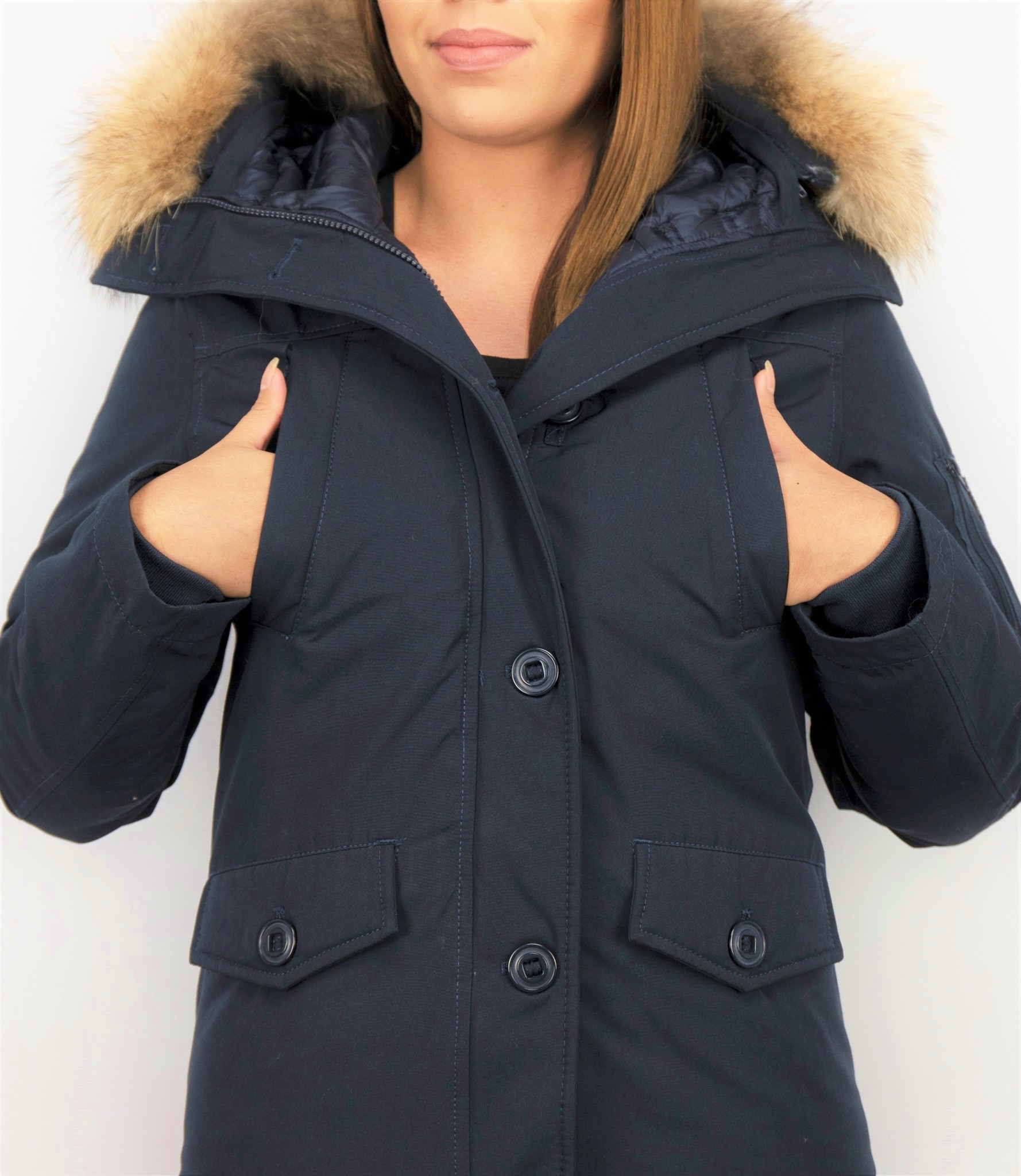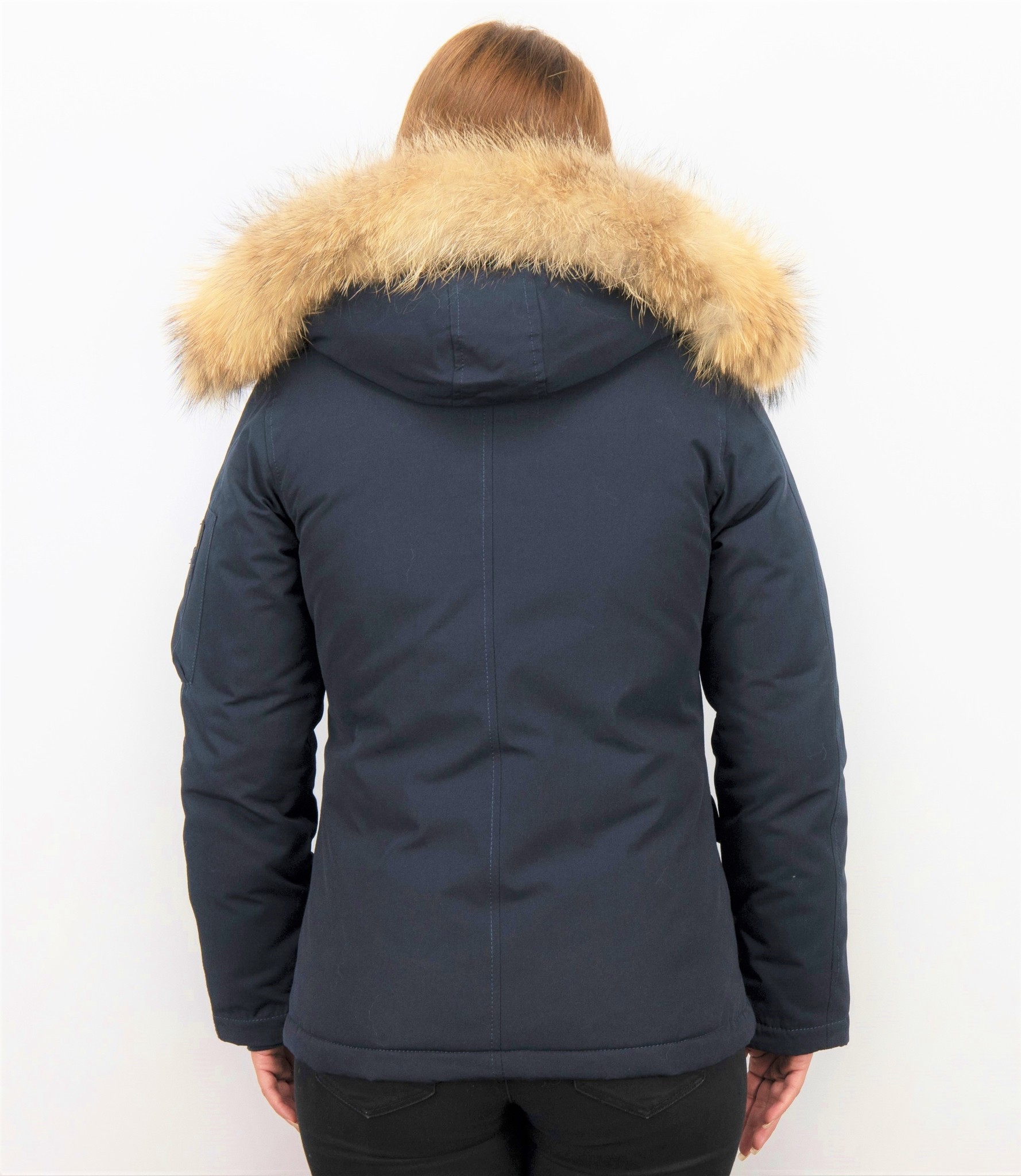 Jacken mit Fellkragen - Winterjacken Damen Kurz - Blau