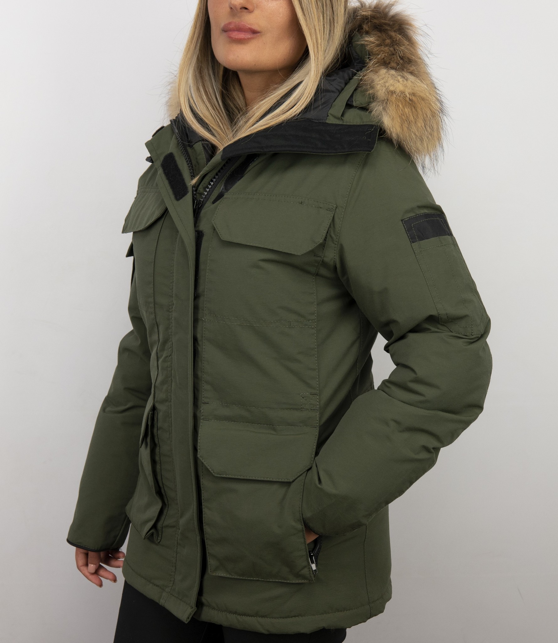 Jacken mit Fellkragen - Winterjacken Damen Lange - Grün