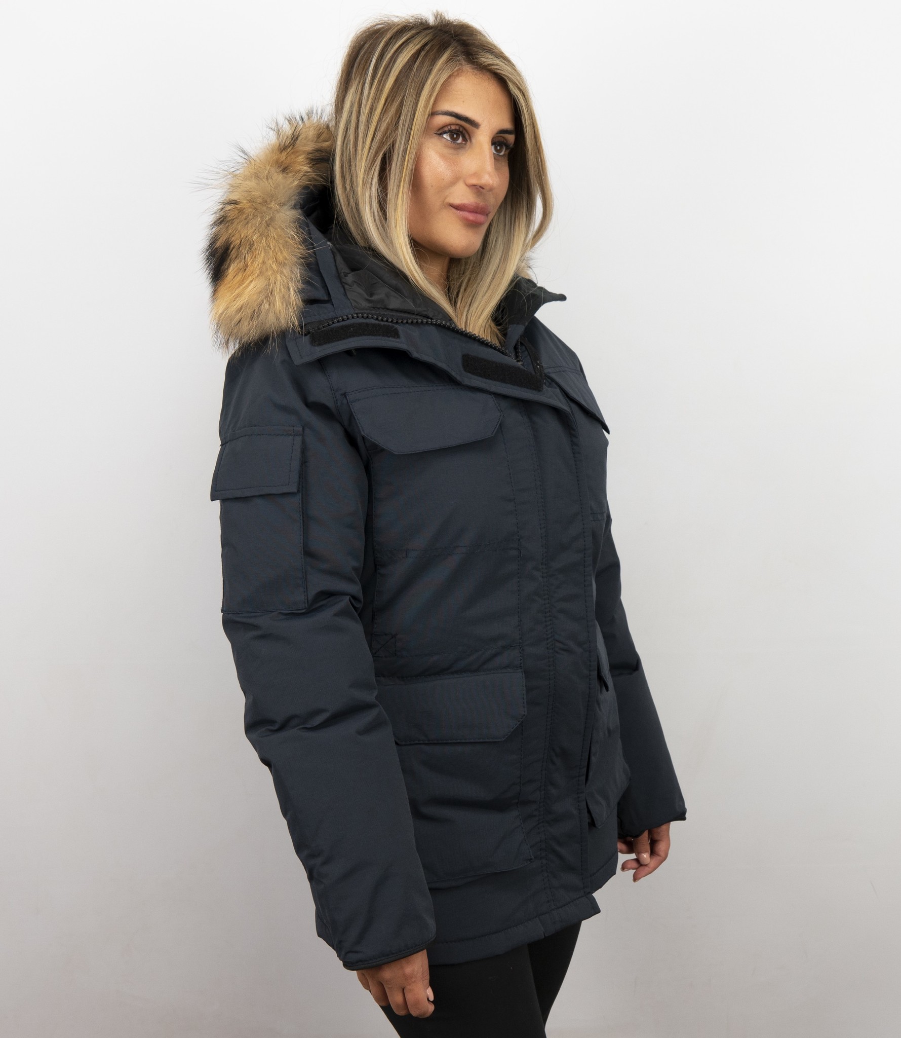 Jacken mit Fellkragen - Winterjacken Damen Lange - Blau