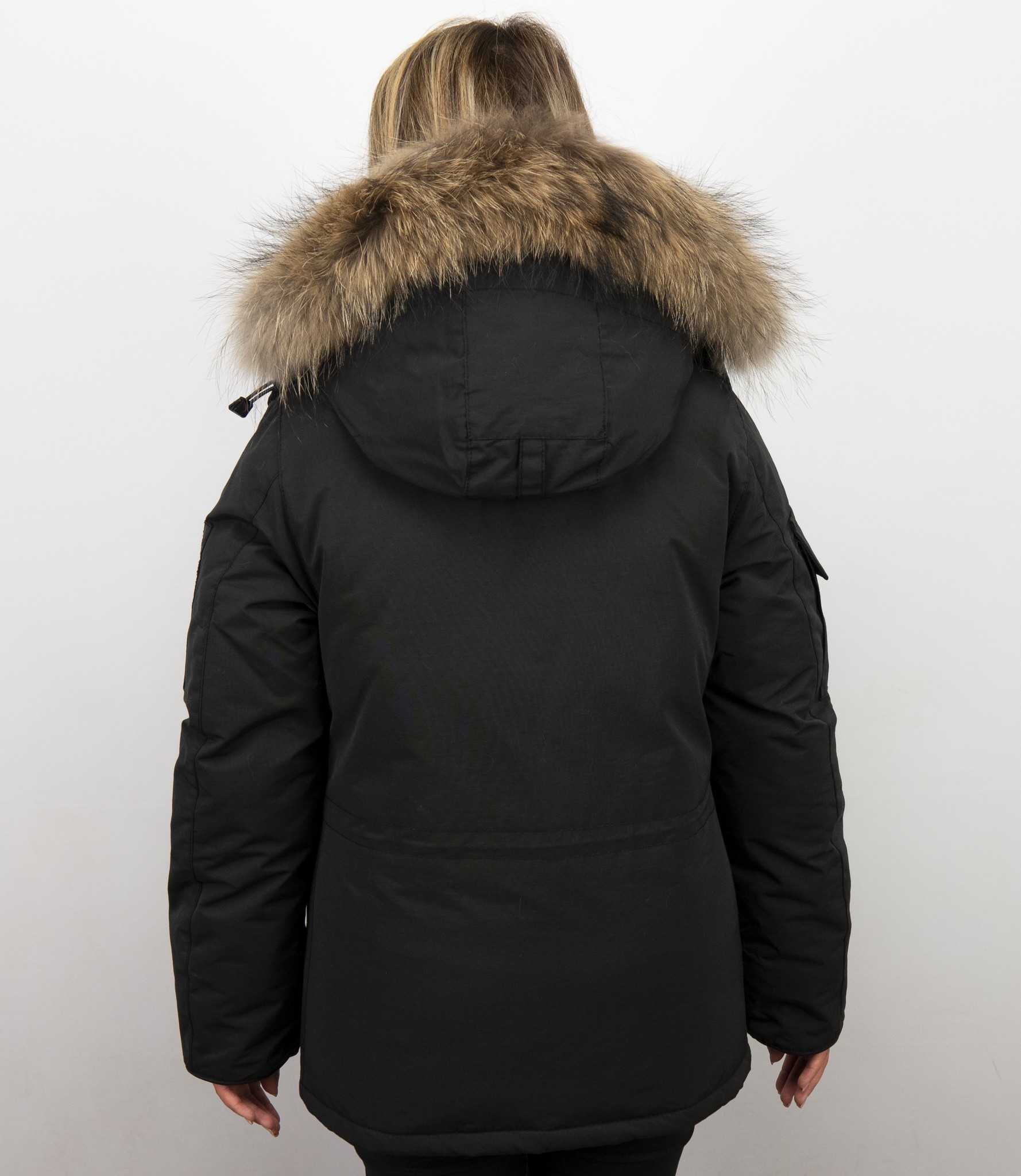 Jacken mit Fellkragen - Winterjacken Damen Lange - Schwarz