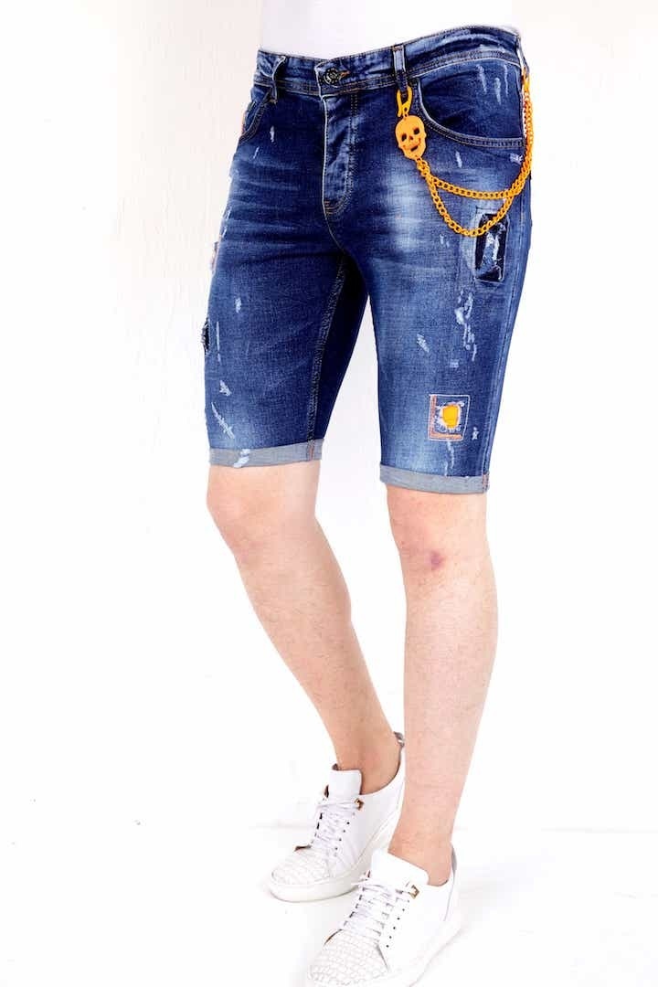 Jeanshose Kurz Slim Fit Destroyed - 1016 - Blau