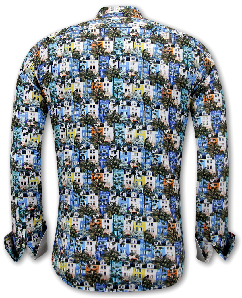 Kunstdruck Print Herren Bluse - 3113 - Blau