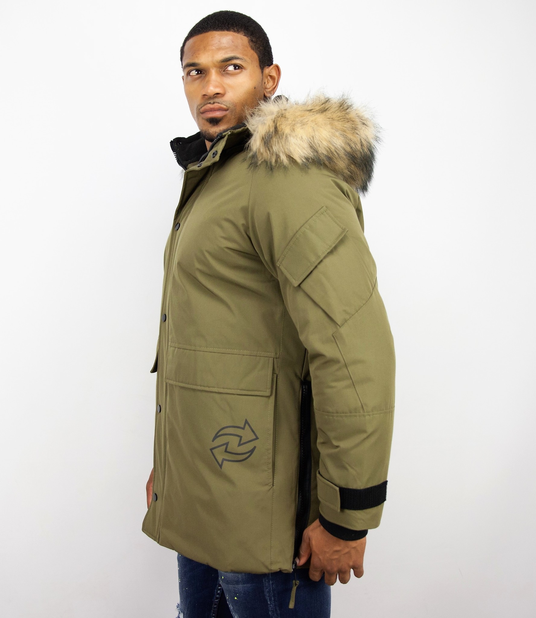 Winterjacke Herren- Parka Lang mit Fellkragen - Grün