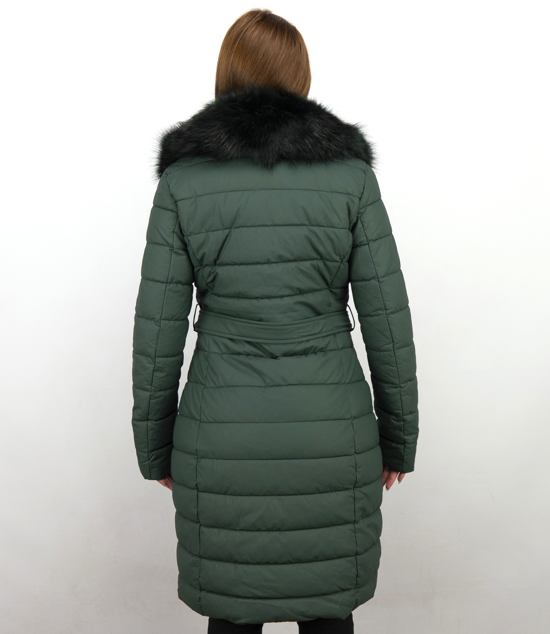Lange Parka Winterjacke Damen mit Kunstpelzkragen - Grün