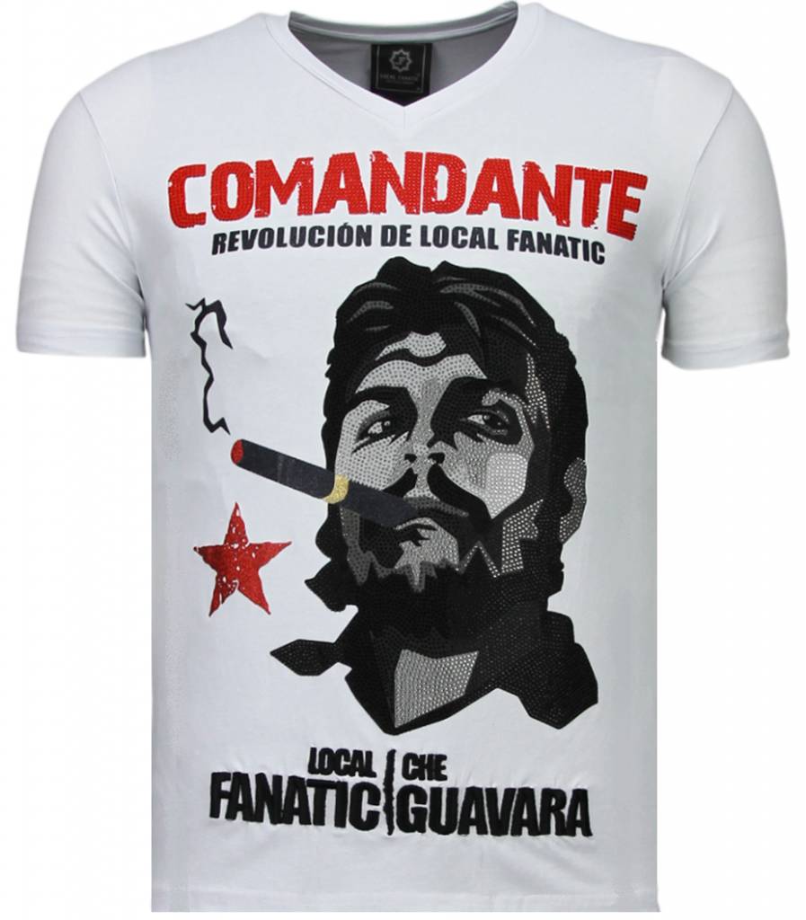 Che Guevara Comandante - Strass T Shirt Herren - Weiß