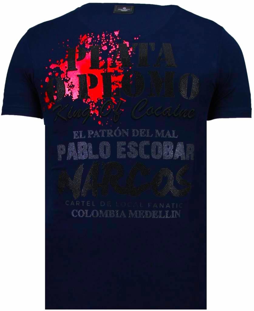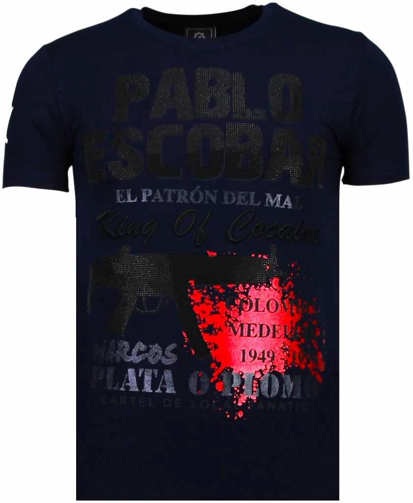Pablo Escobar Narcos - Strass T Shirt Herren - Navy / Schwarz
