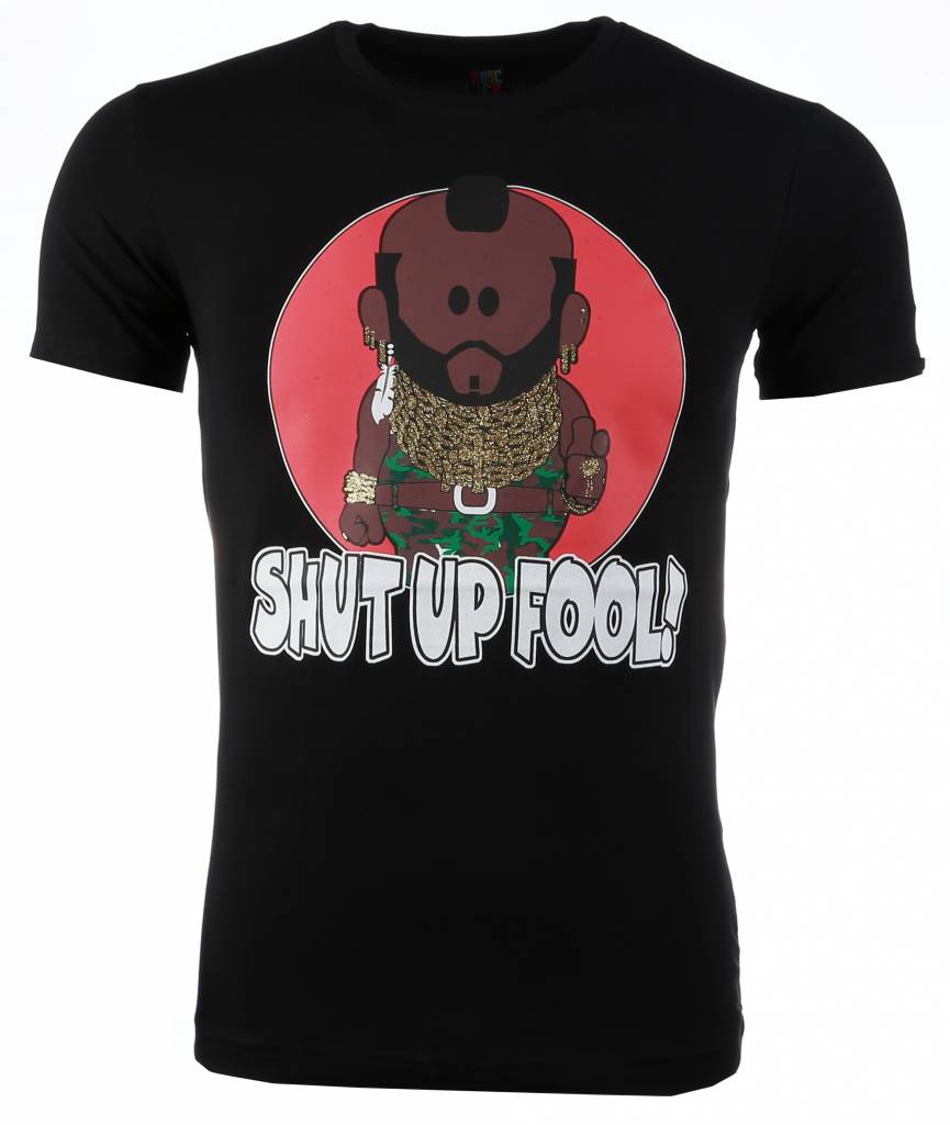 T Shirt Herren - A-team Mr.T Shut Up Fool Print - Schwarz