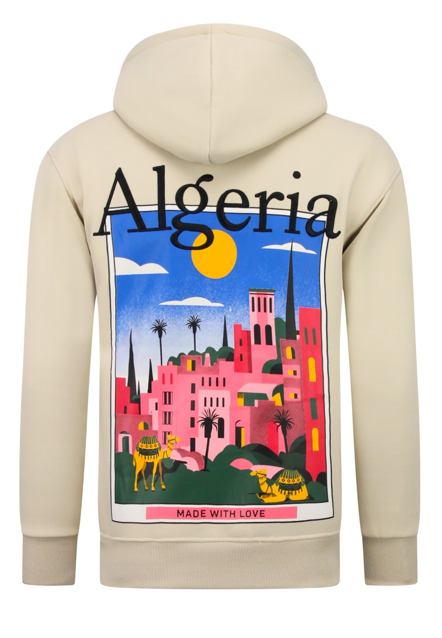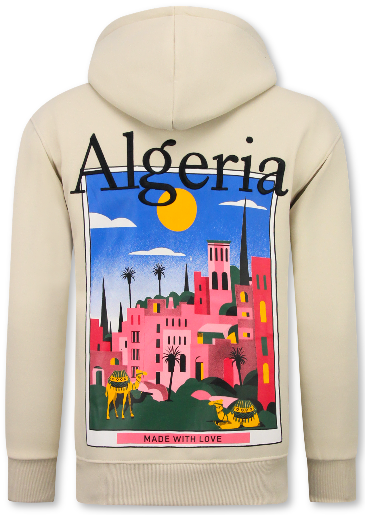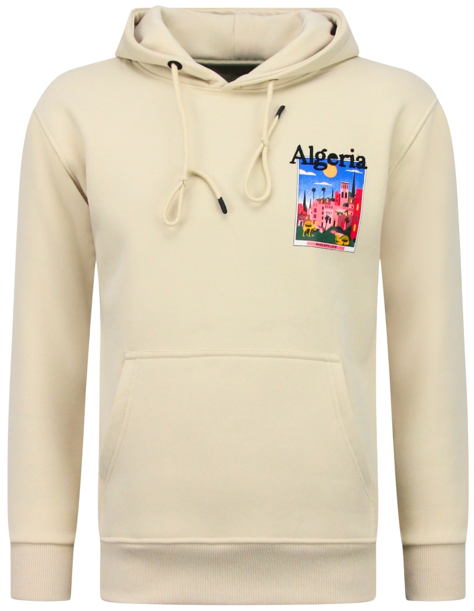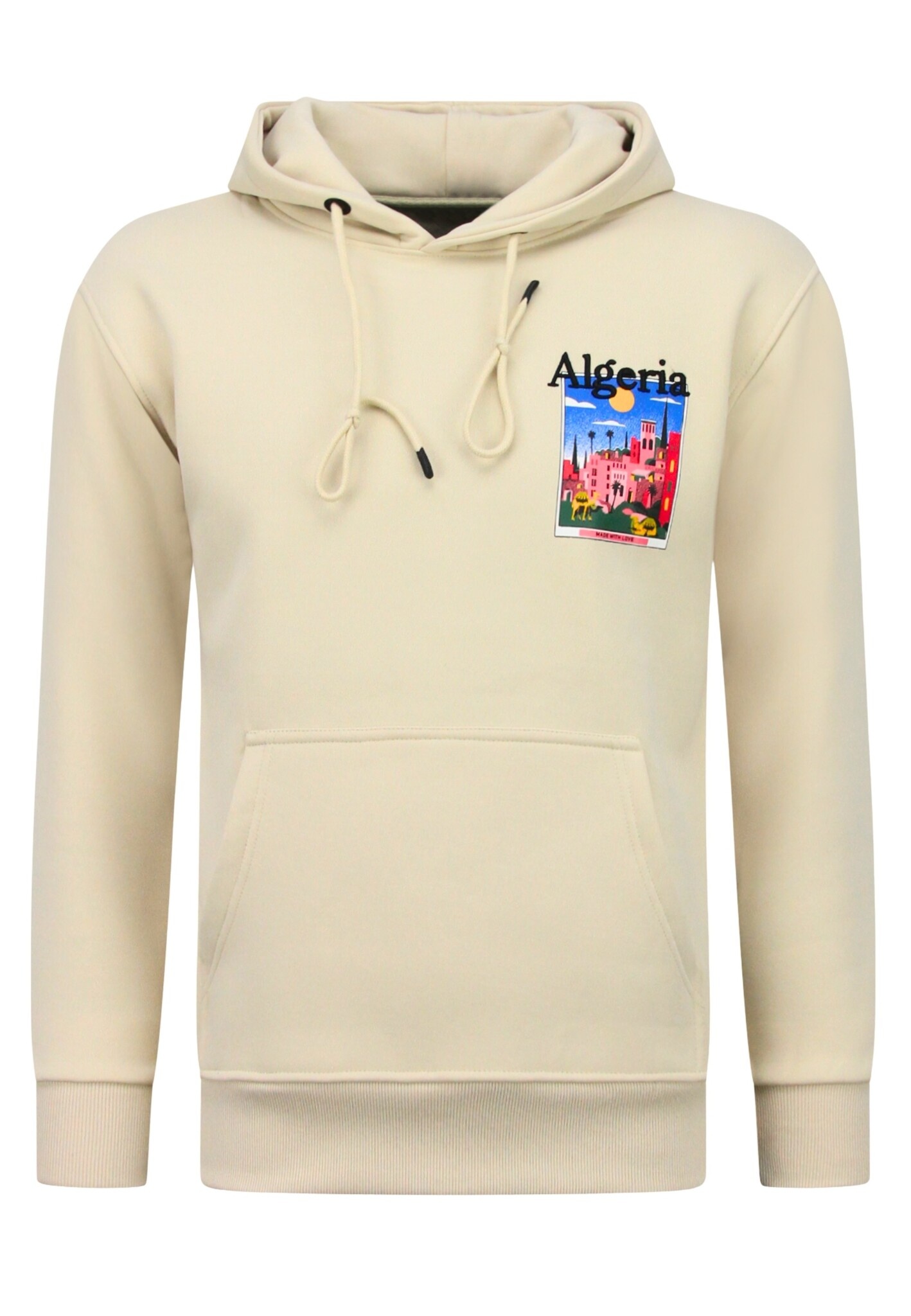 Oversized Hoodie für Herren mit Kapuze – Algerien Print – Dick gewebt – 5813 – Braun