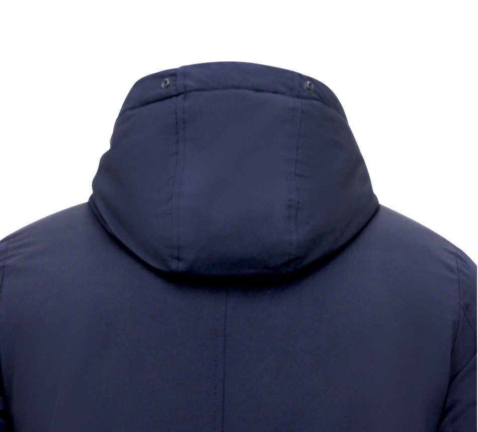 Vorgedruckte Knöpfe/Reißverschluss an der Kapuze.