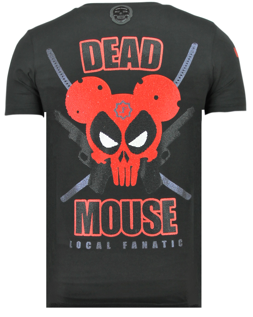 Rhinestones Psycho Mouse - Shirt Mit Strasssteinen - 6321Z - Schwarz