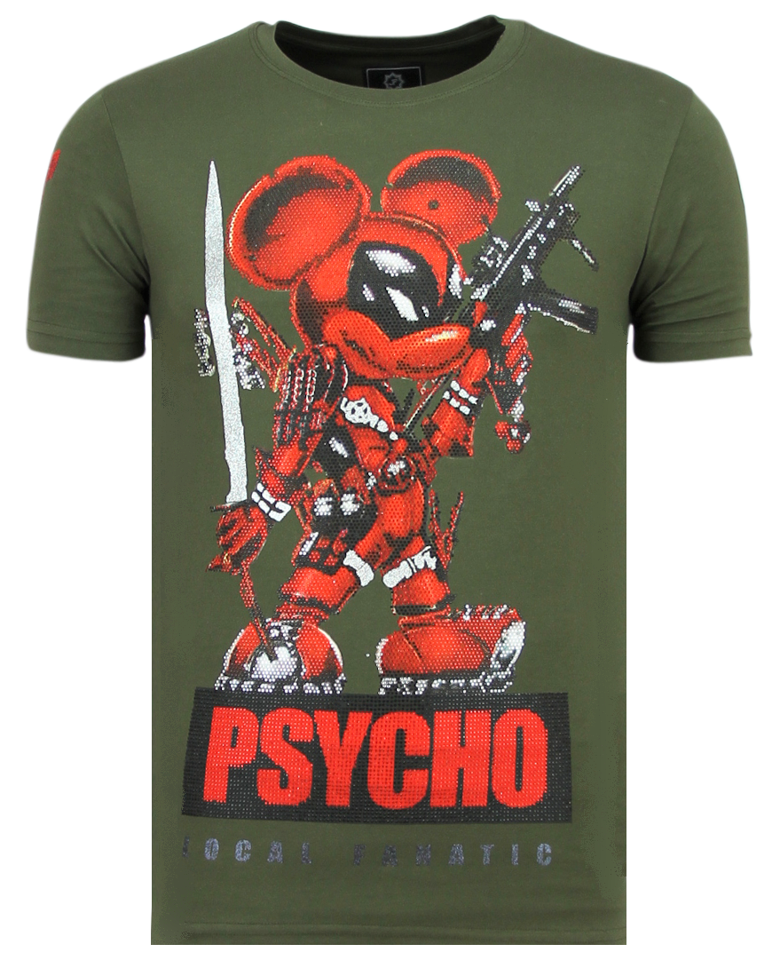 Rhinestones Psycho Mouse - T shirt Mit Strass - 6321G - Grün