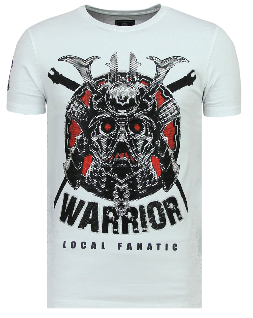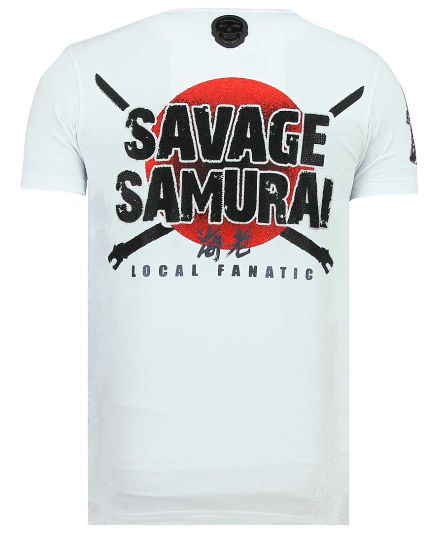 Savage Samurai Rhinestones - Cooles T-Shirt Männer - 6327W - Weiß