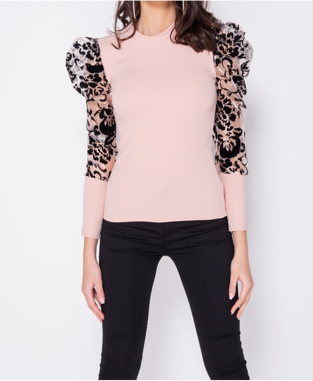 Holen Sie sich Ihre Übergangs-Kollektion mit unserem Angebot an neuen Saison Platten eingedeckt. Dieser hohe Hals oben mit Flockdruck & schiere Organza Ärmel können mit zerrissenen Jeans und hochhackige Stiefel für einen mühelos eleganten Look gestylt wer