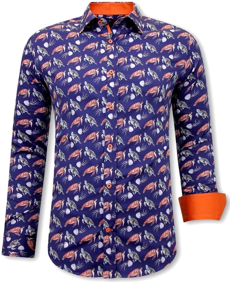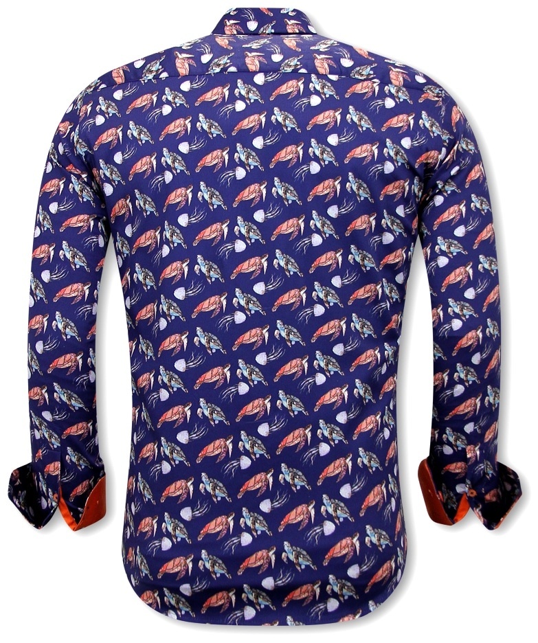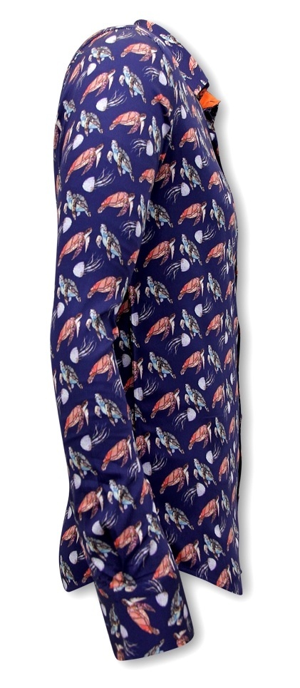 Schildkrötendruck Herren Slim Fit Shirt - 3091 - Blau