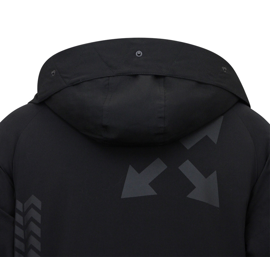Vorgedruckte Knöpfe/Reißverschluss an der Kapuze.