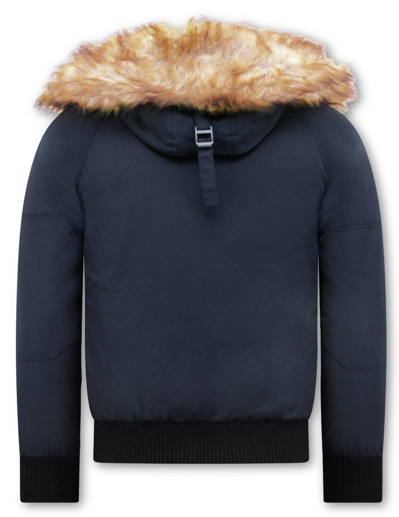 Short Herren Winterjacke - Mit Kunstpelzkragen - Blau