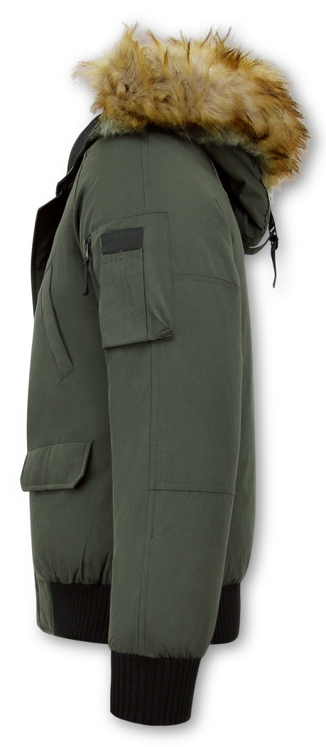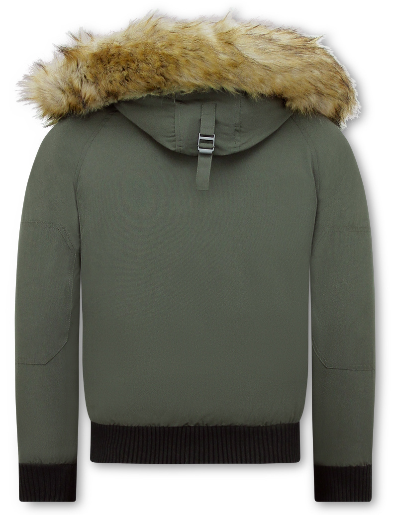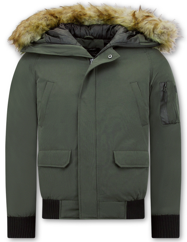 Short Herren Winterjacke - Mit Kunstpelzkragen - Grün