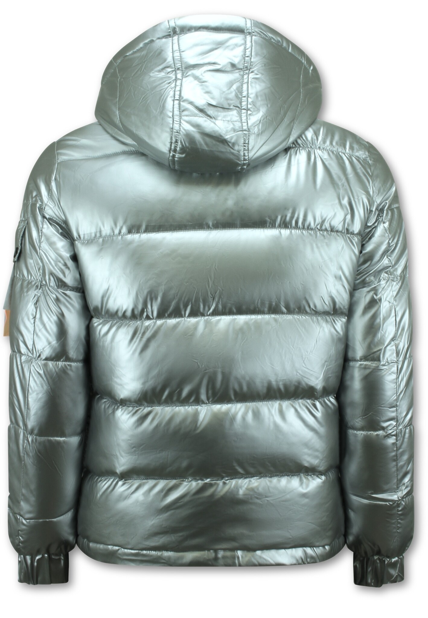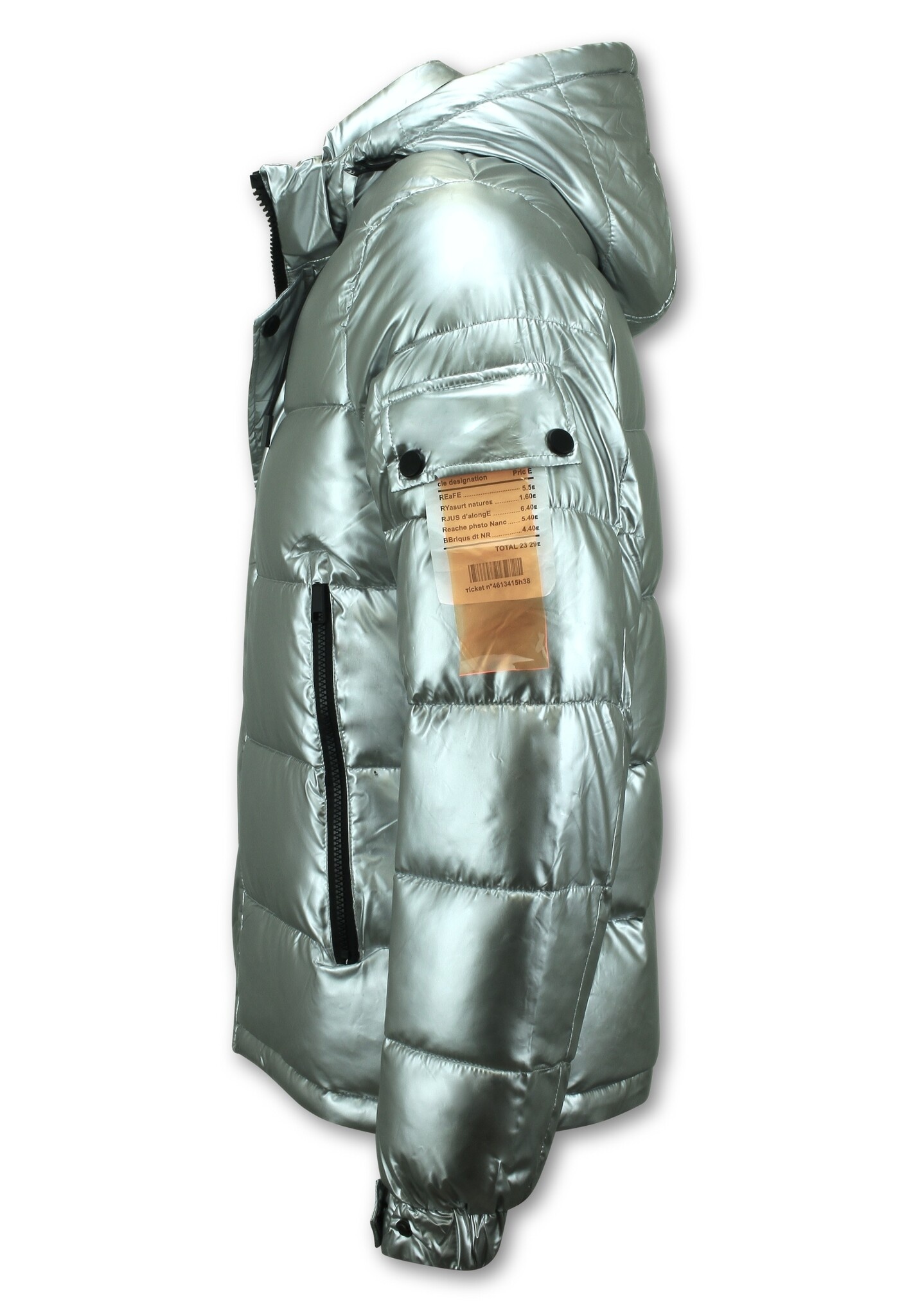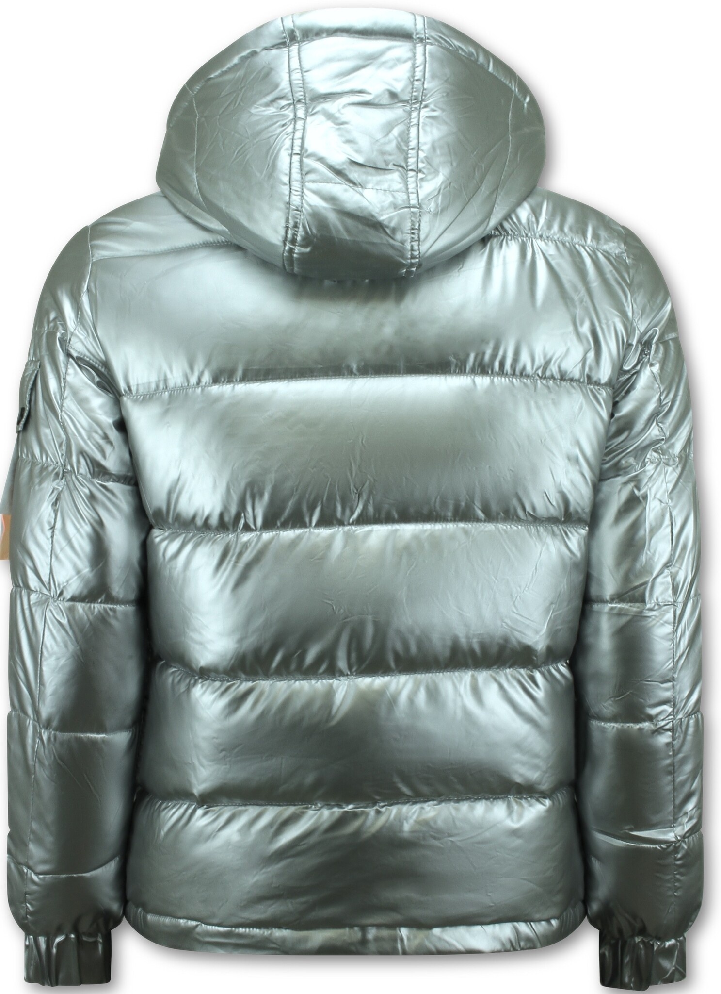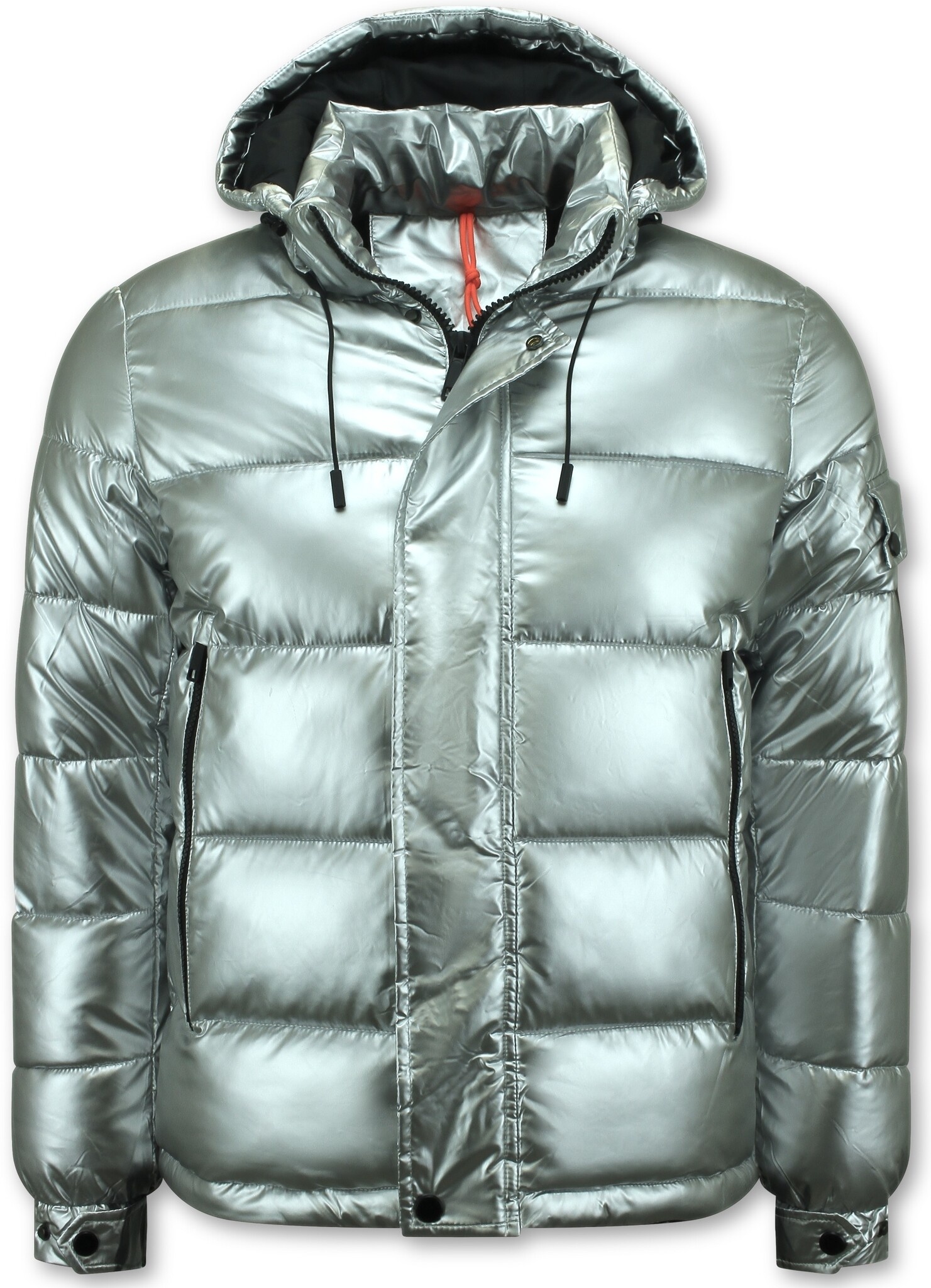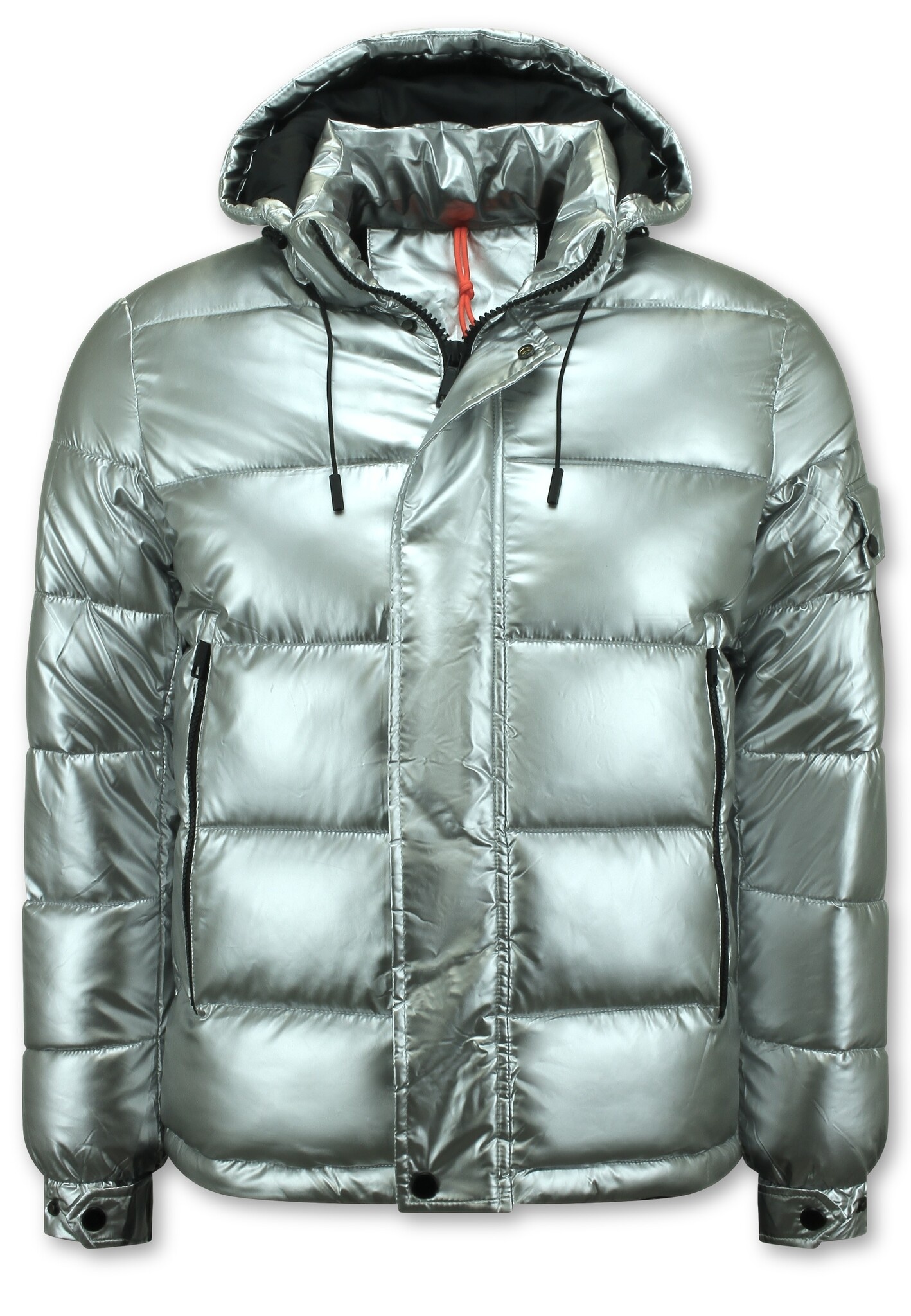 Silberfarbene Pufferjacken Männer mit Kapuze