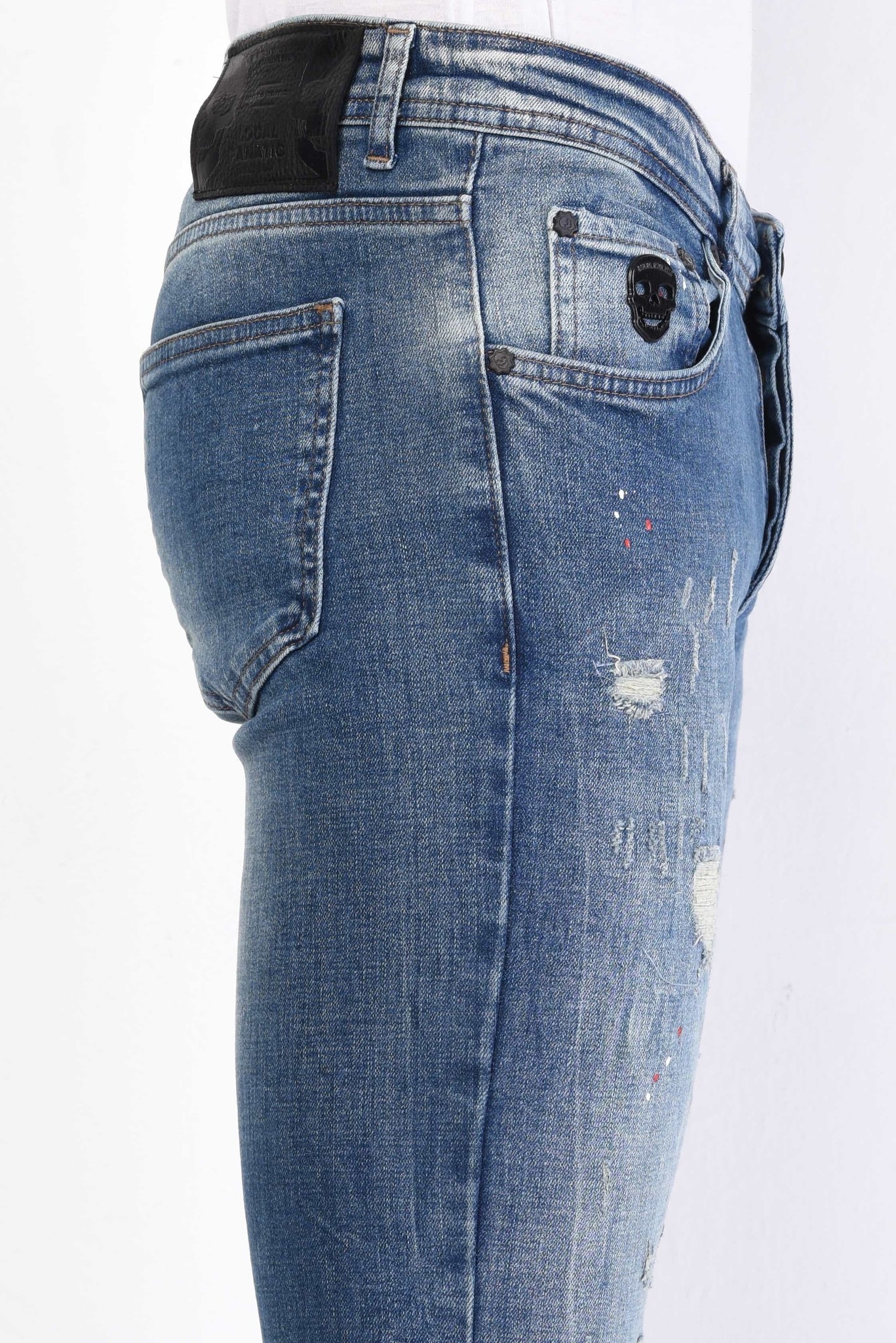 Slim Fit Herren Jeans Farbspritzer - 1068 - Blau