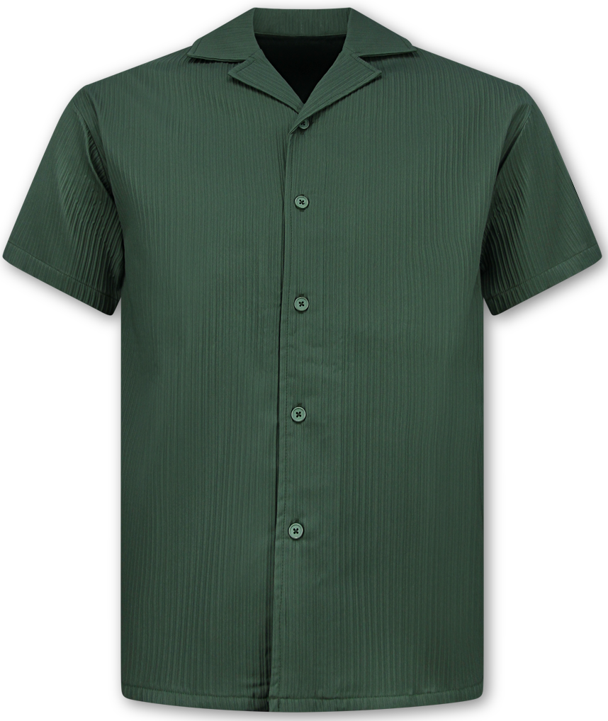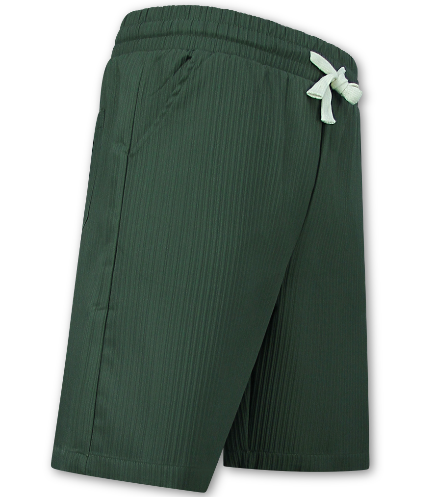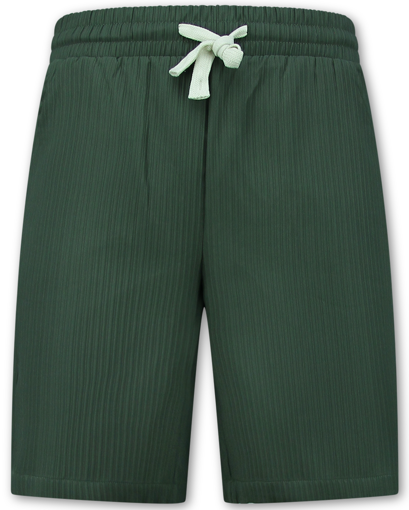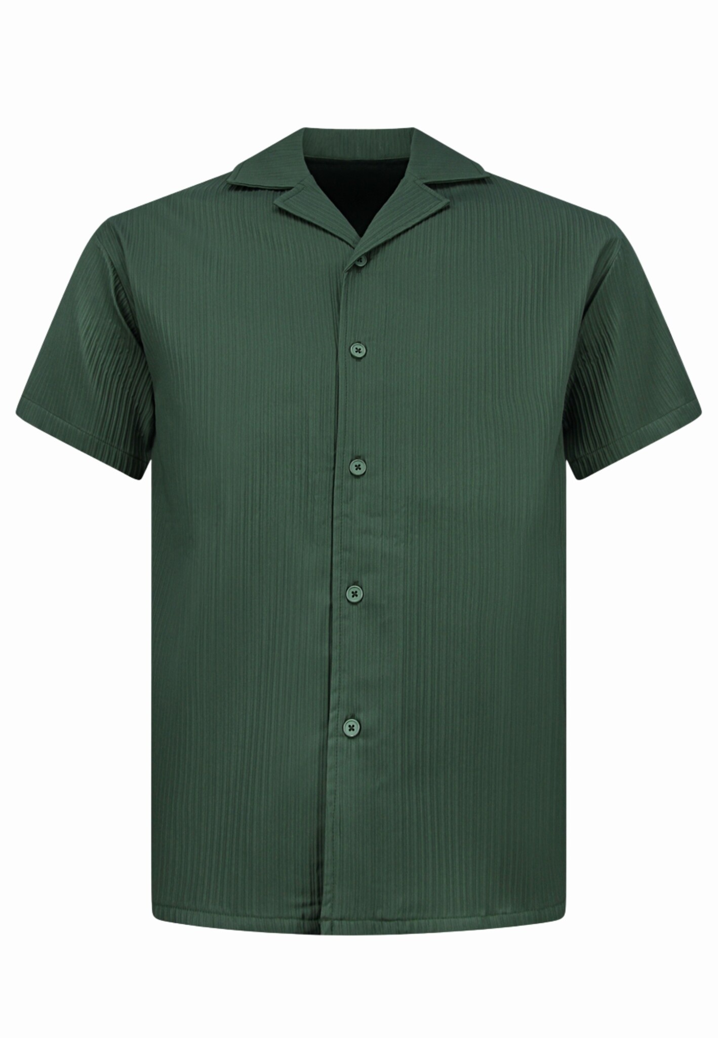 Herren Sommer Set – Geripptes Oversize Hemd – Herren Shorts / Herren Oversize T Shirt – Twinset – F 919 – Grün