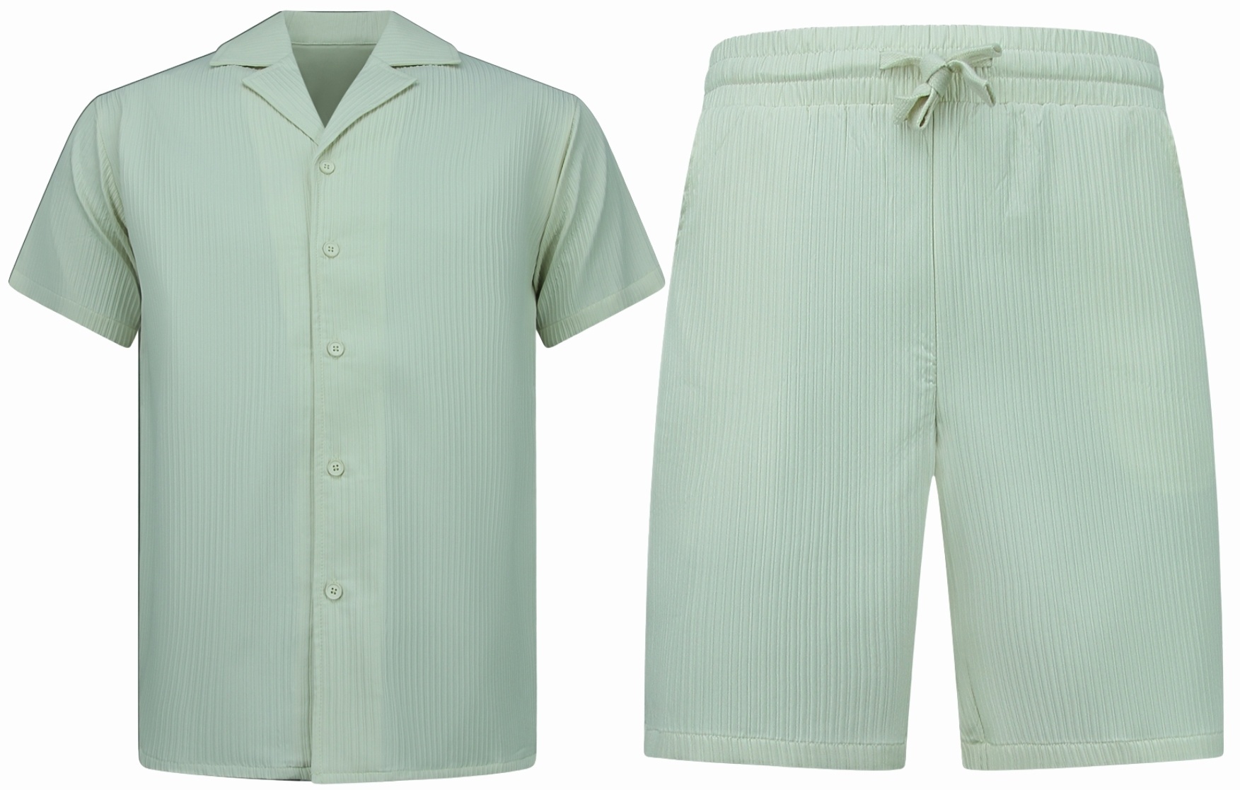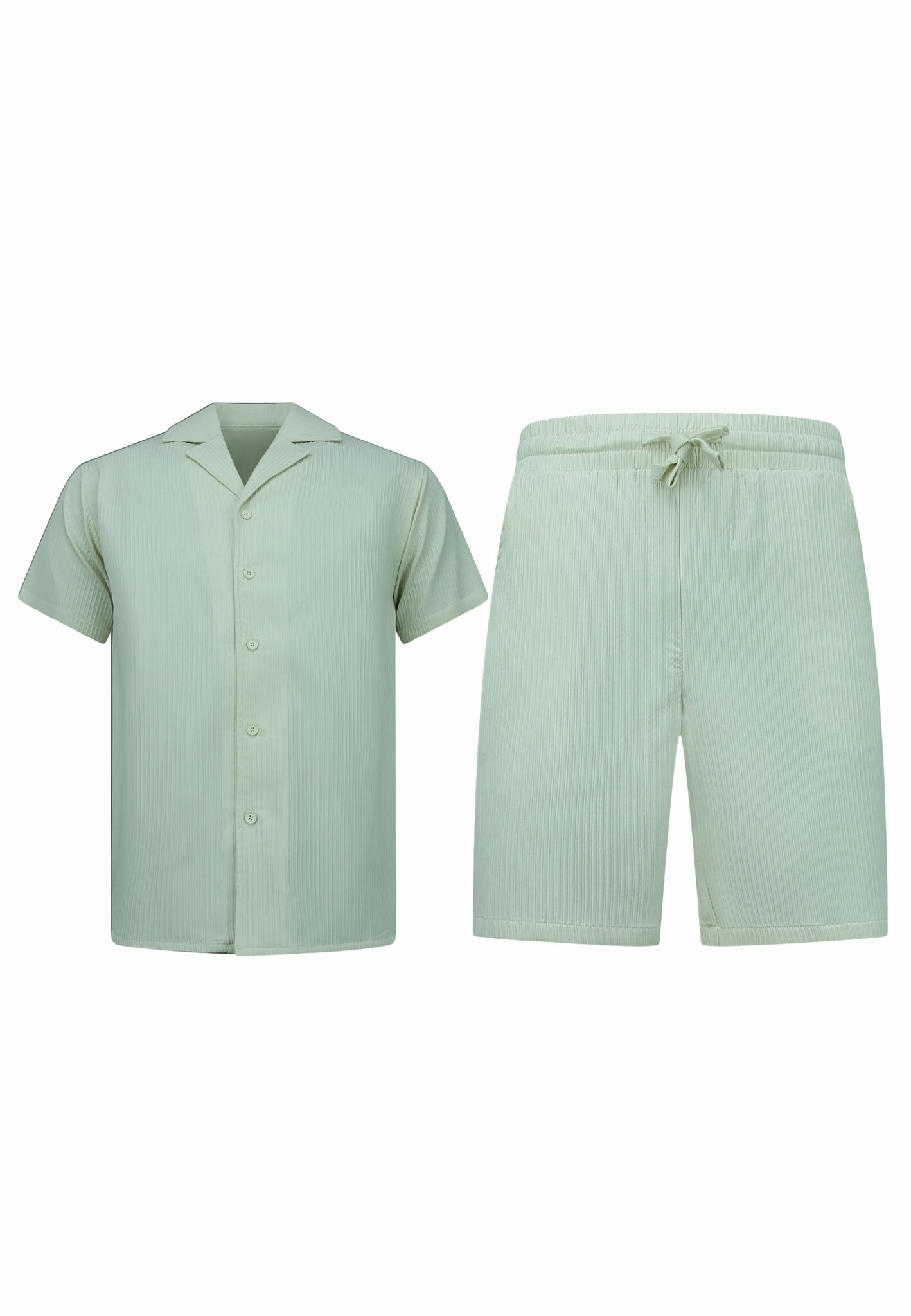 Geripptes Oversize Hemd – Sommer Set für Herren – Shorts für Herren / Oversize Hemd für Herren – Twinset – F 919 – Beige