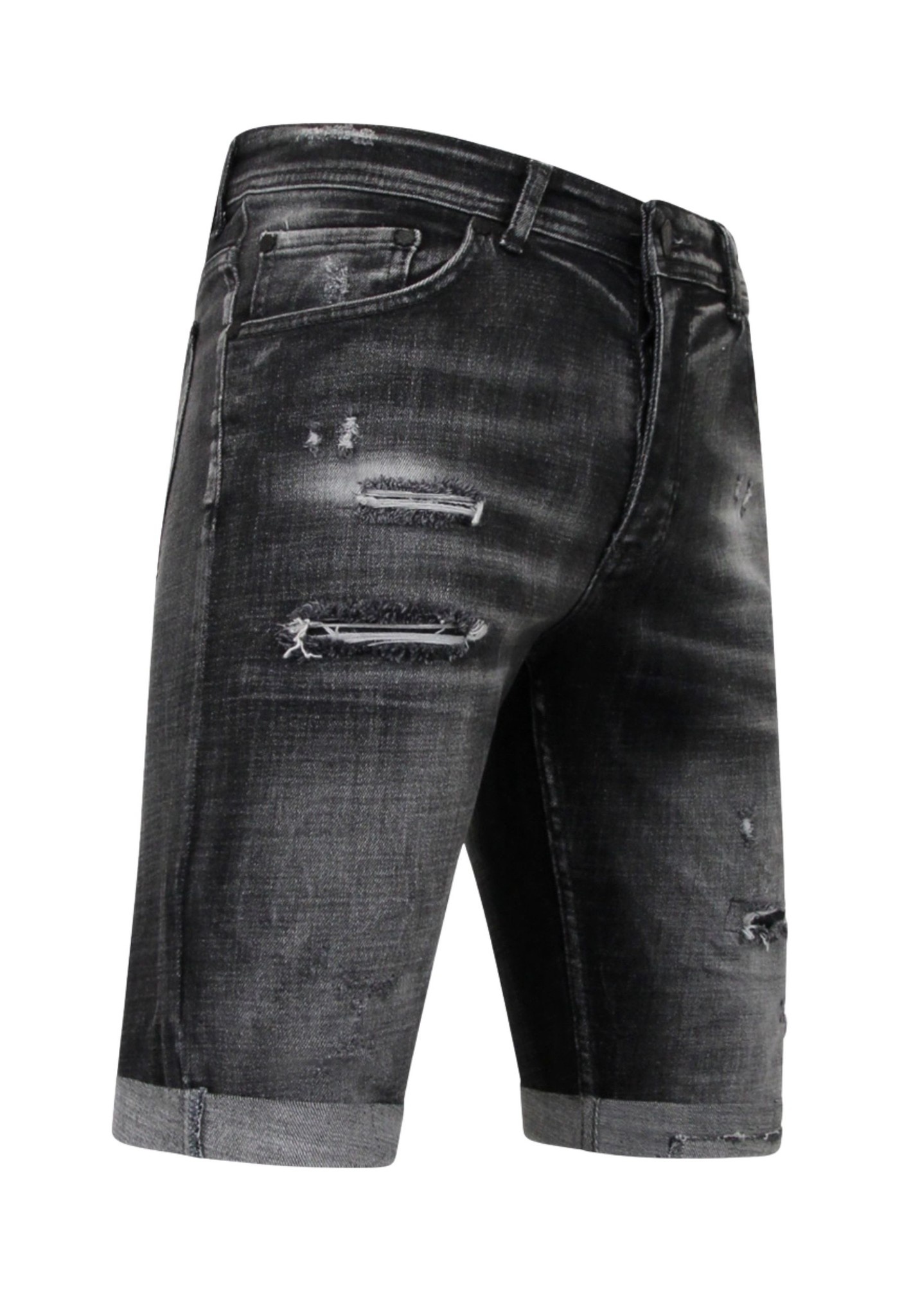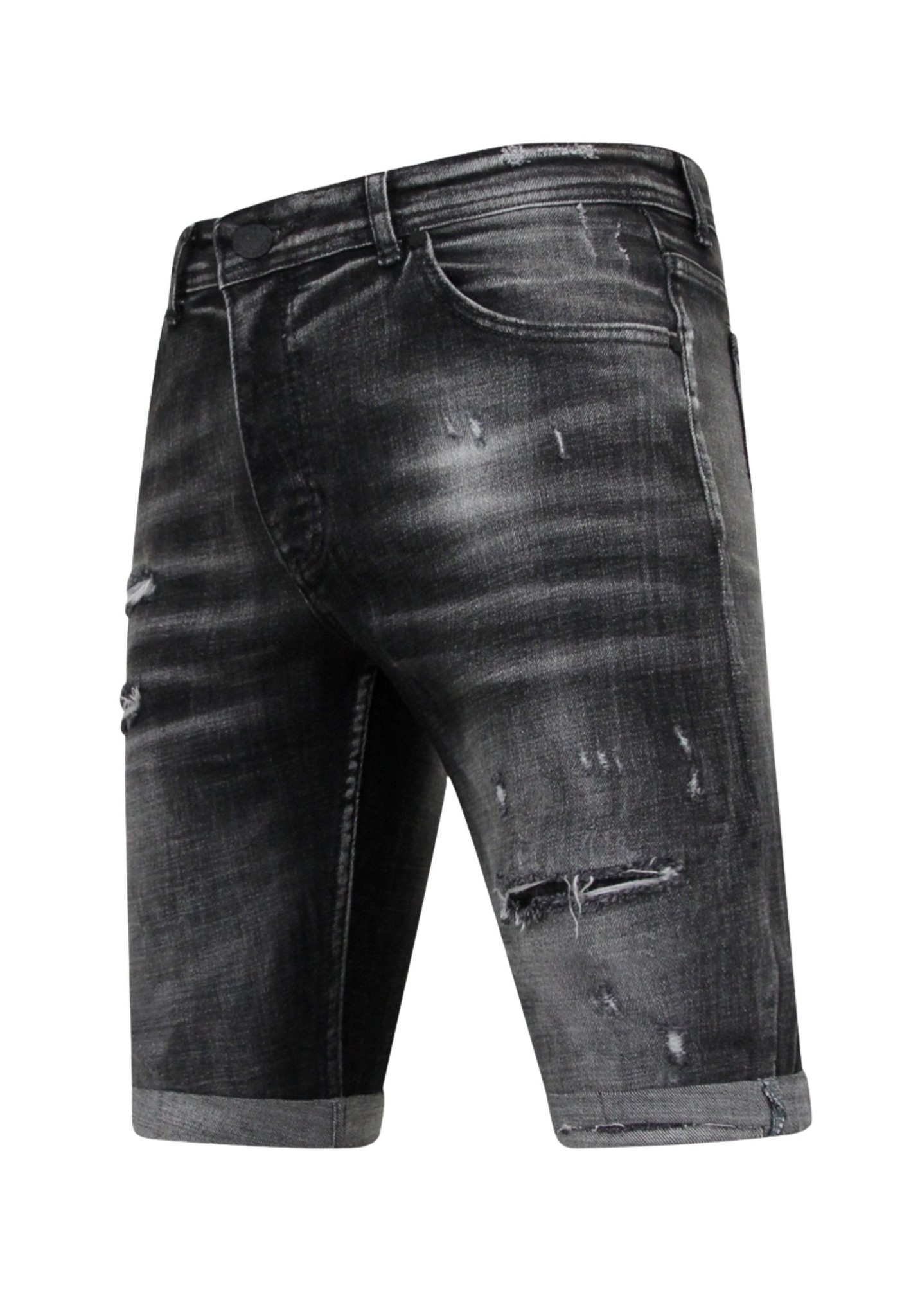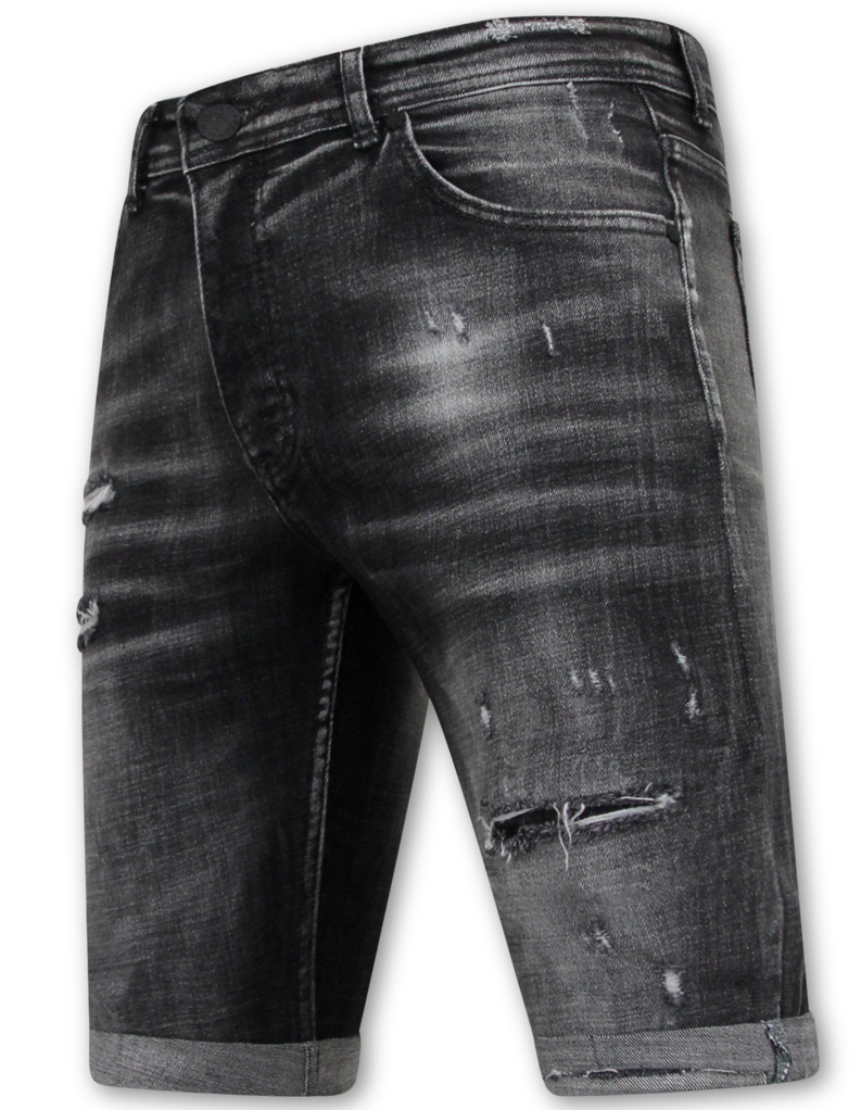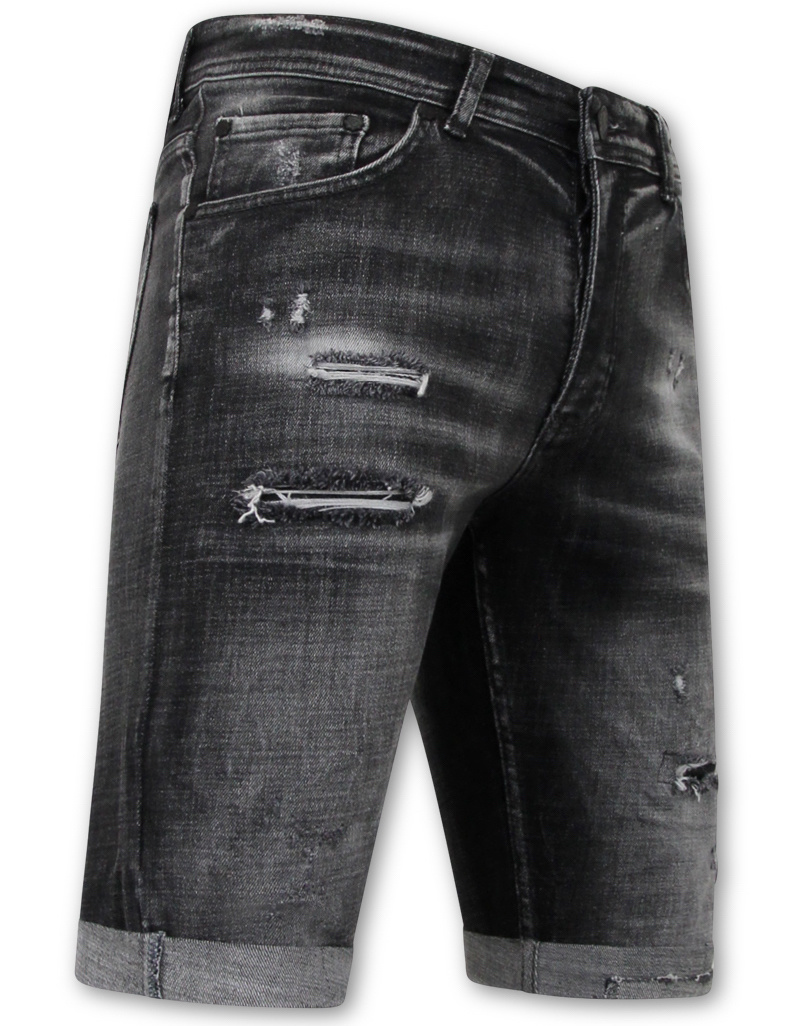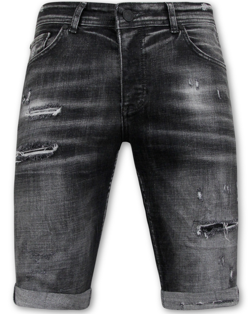 Stonewashed Ripped Männer Short - Slim Fit -1085- Schwarz