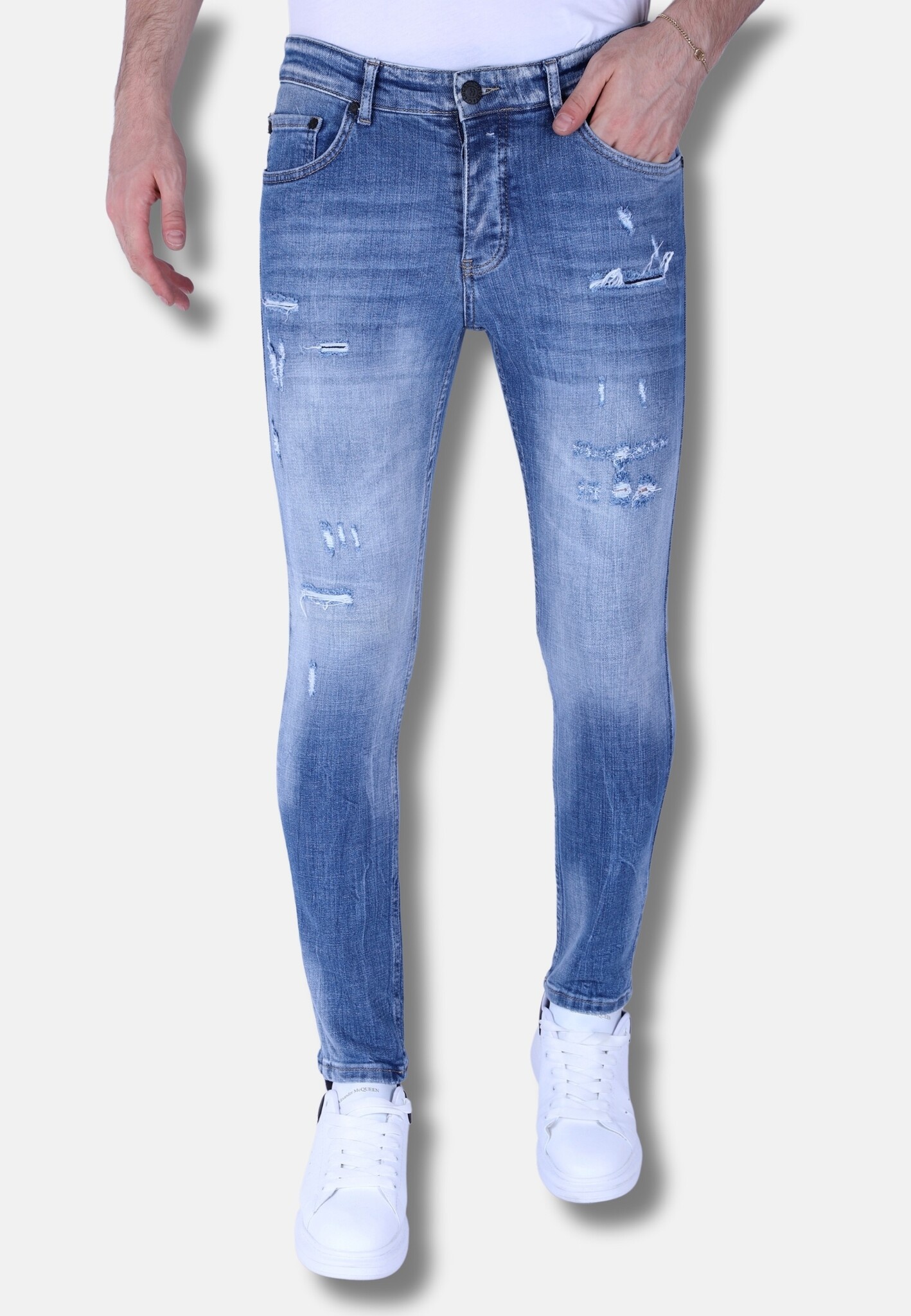 Stonewashed Slim Fit Herrenjeans mit Stretch -1098 - Blau