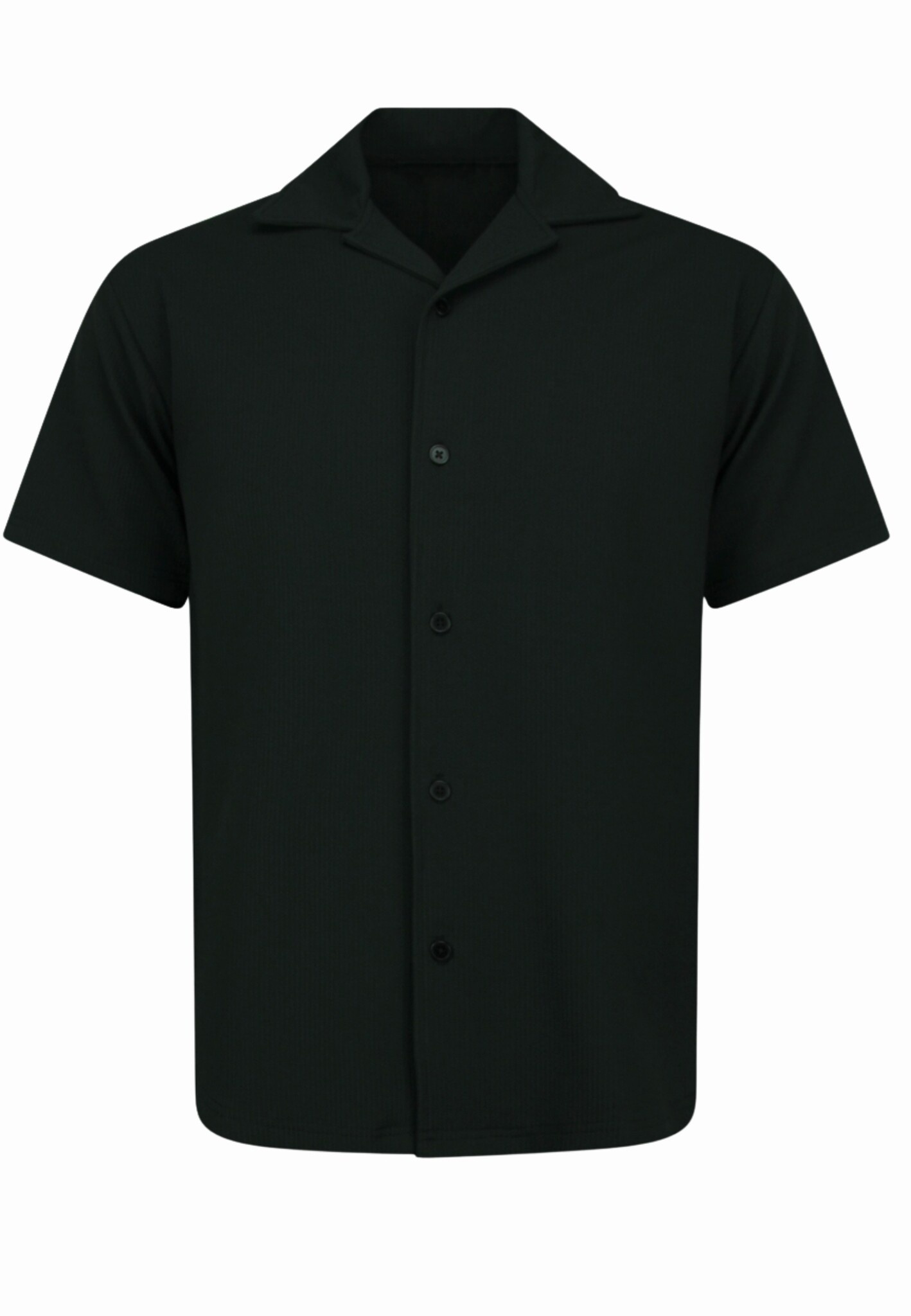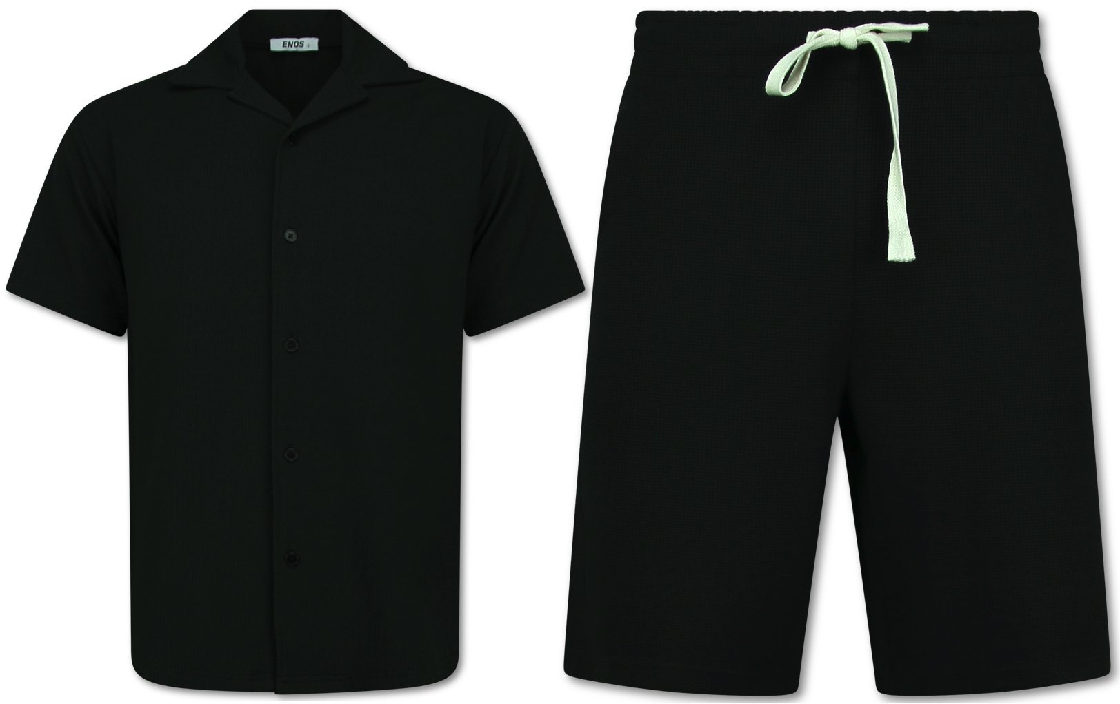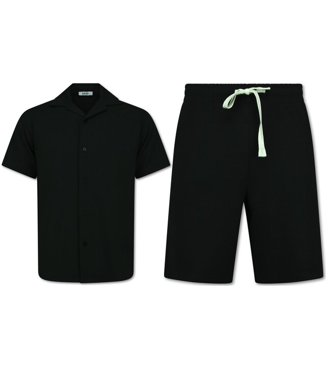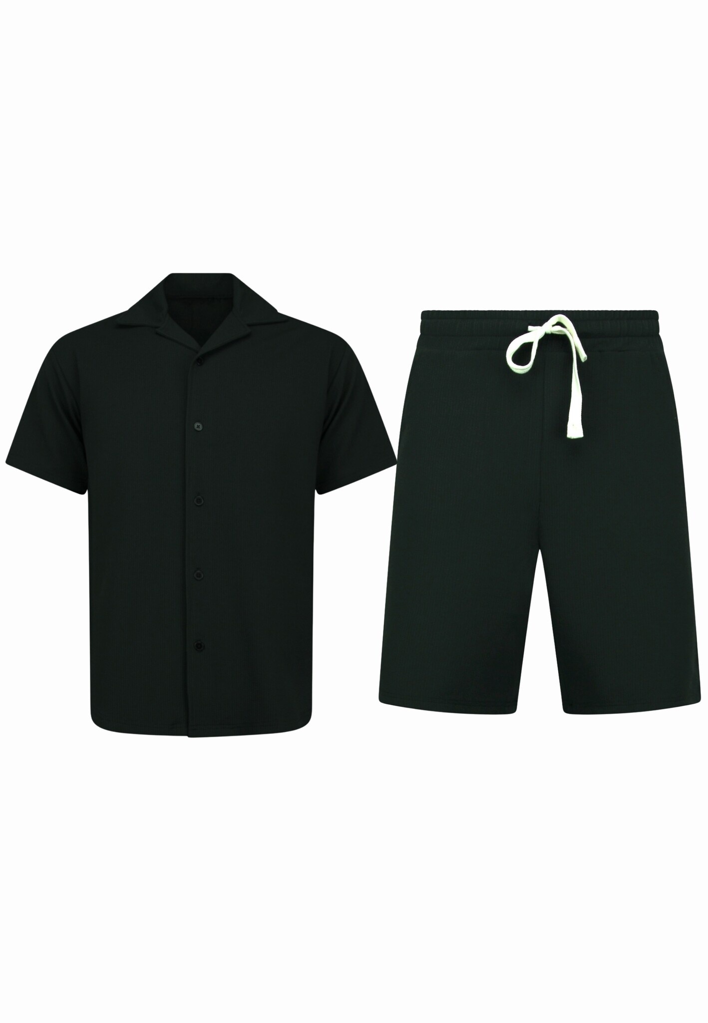 Twinset – Geripptes Oversize Hemd – Sommer Set für Herren – Zweiteiliges Set – Kombi Set – F 915 – Schwarz