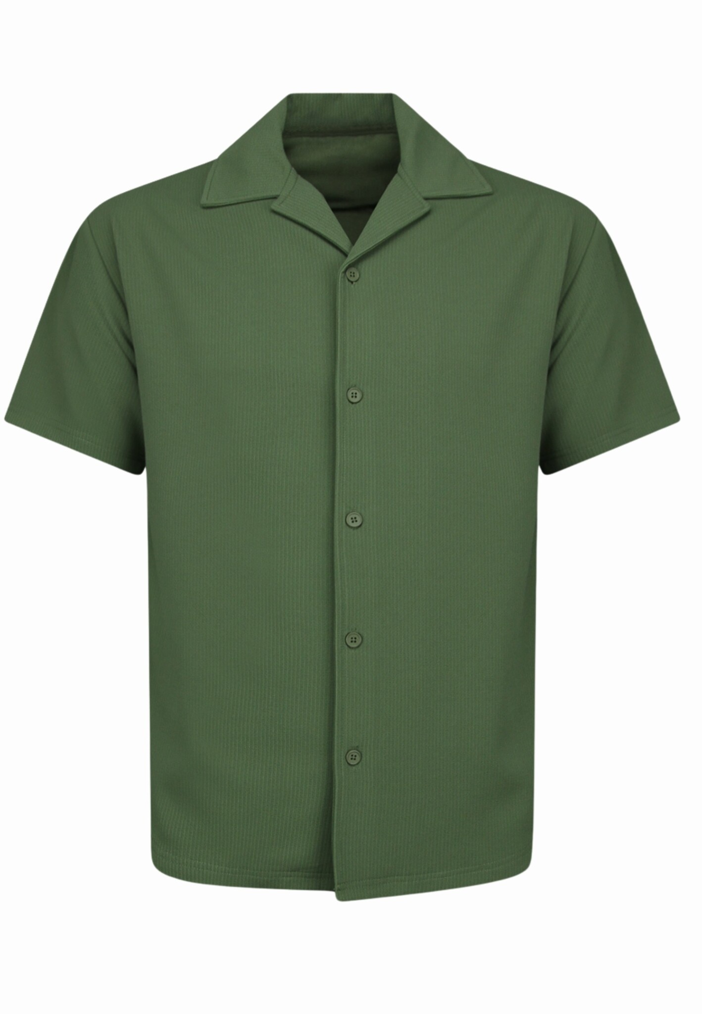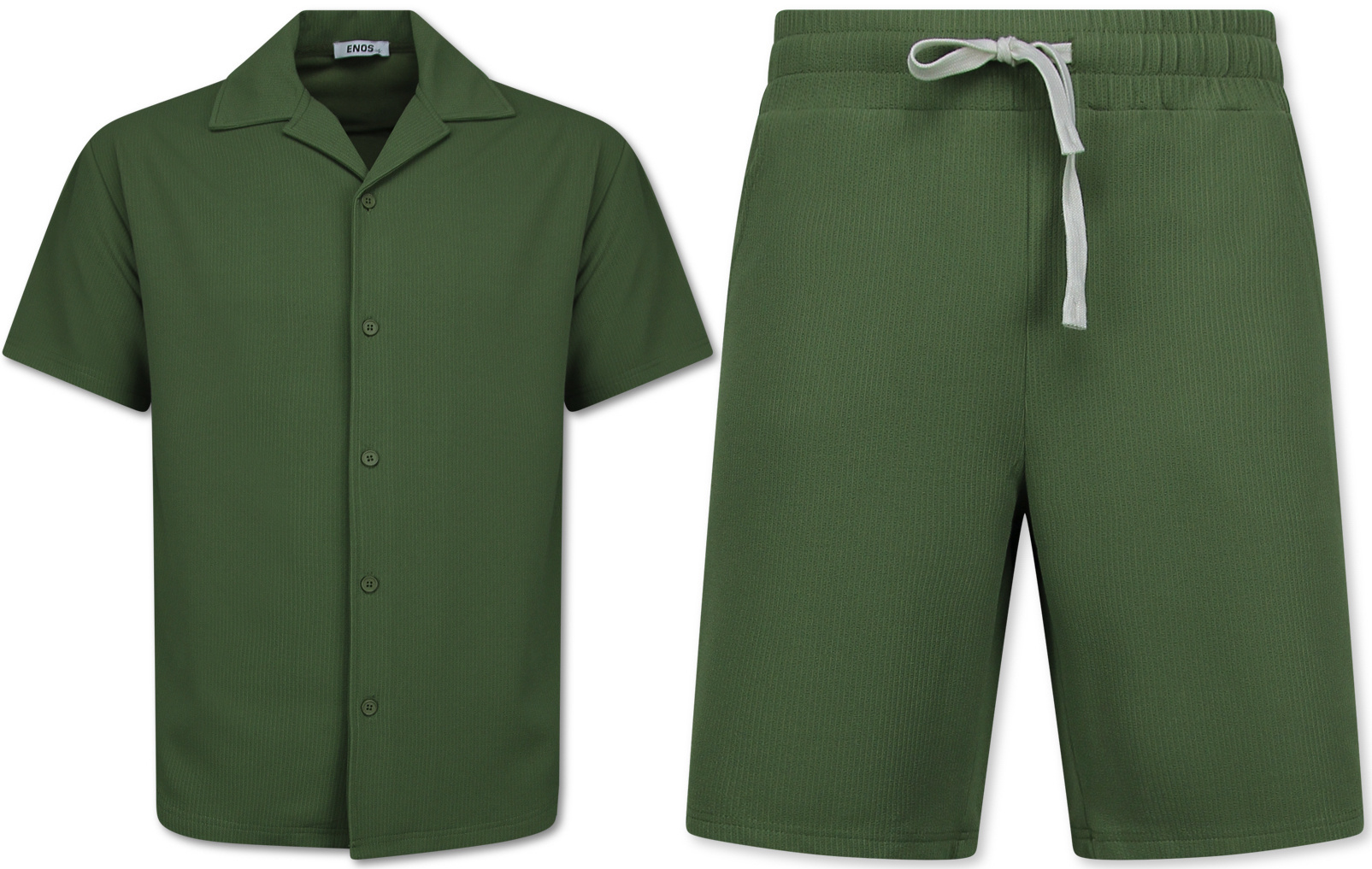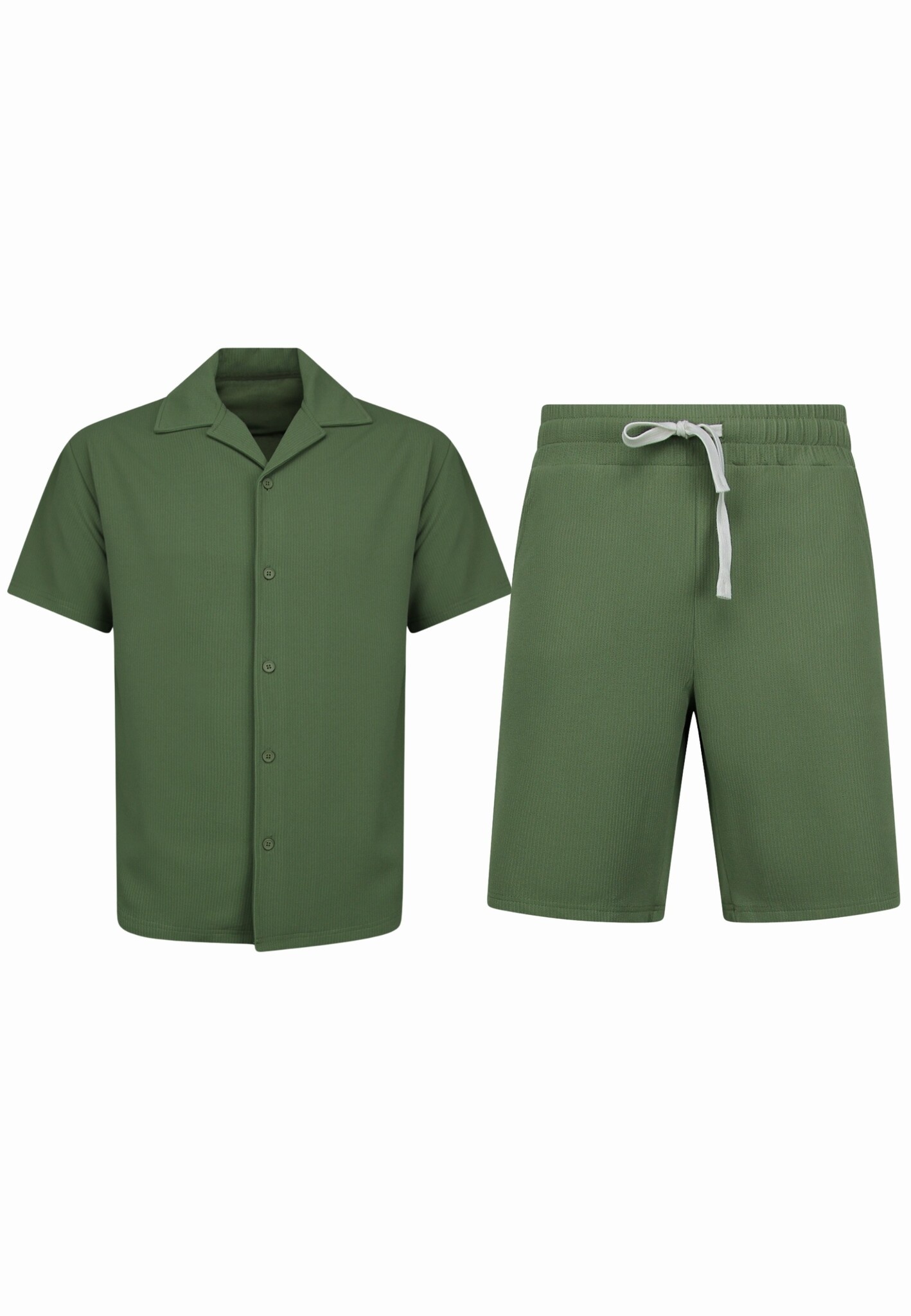 Twinset – Geripptes Oversize Hemd – Sommer Set für Herren – Zweiteiliges Set – Kombi Set – F 915 – Grün