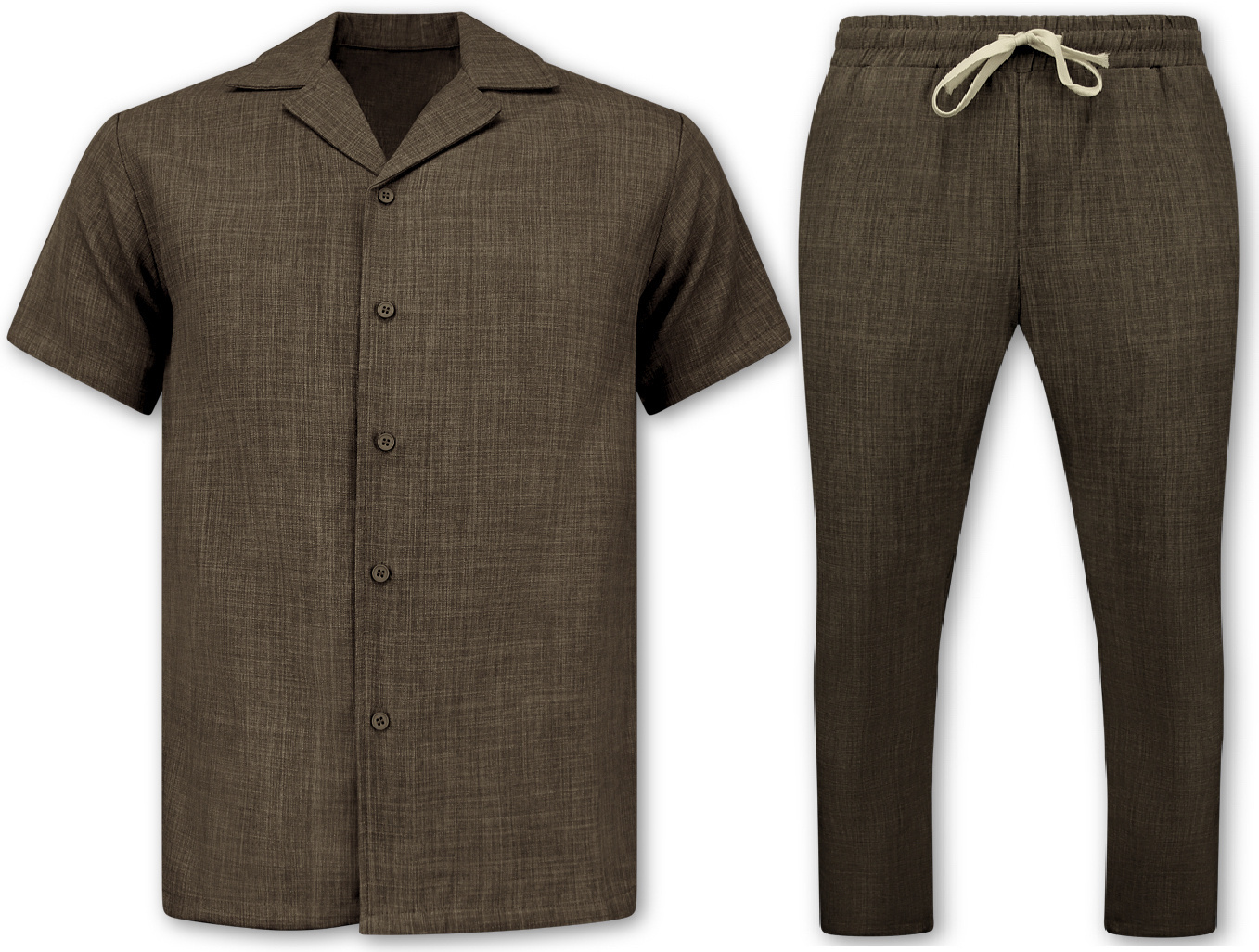 Leinen Twinset – Leinen Sommerset für Herren – Leinenhemd für Herren – Leinenhose für Herren – MG 011 – Braun