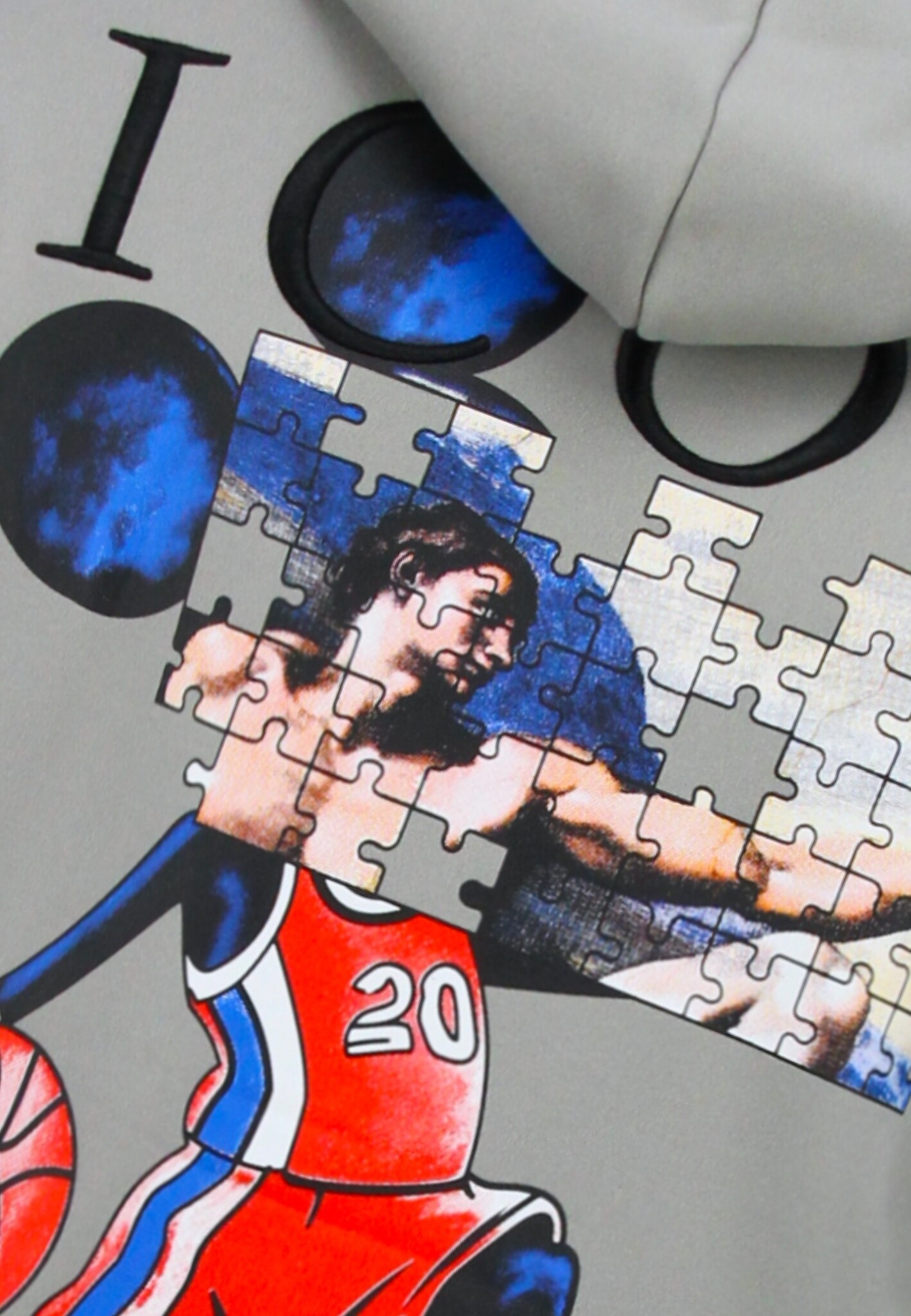Oversized Hoodie für Herren mit Kapuze – ICON Puzzle Milano Print – Dick gewebt – 5811 – Grau