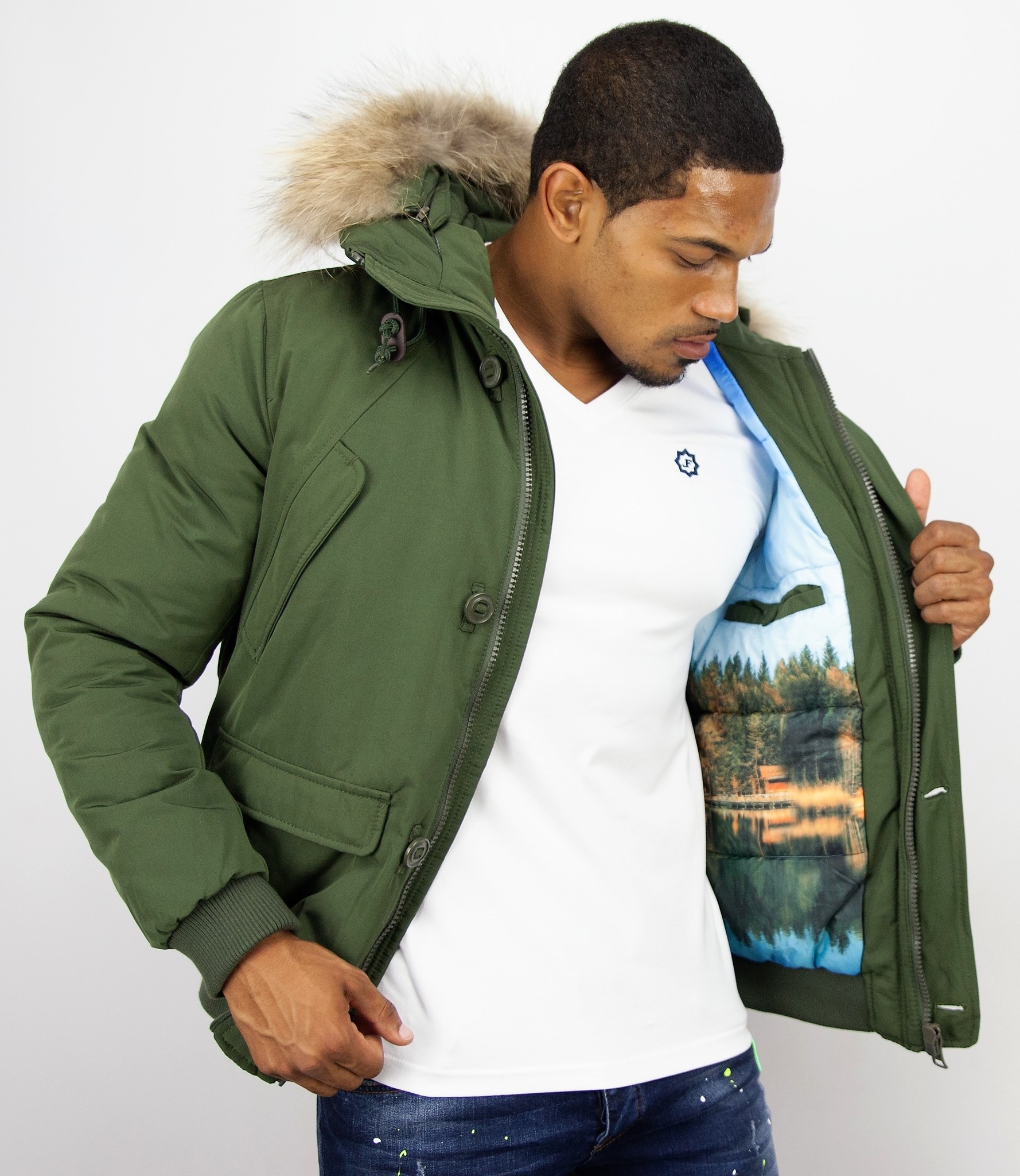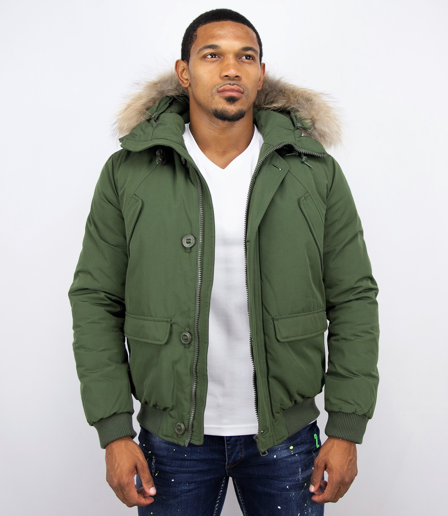 Kurze Winterjacken Herren mit Fellkragen - Chilliwack Bomber - Grün