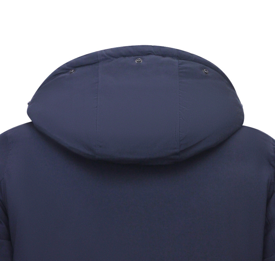Vorgedruckte Knöpfe/Reißverschluss an der Kapuze.