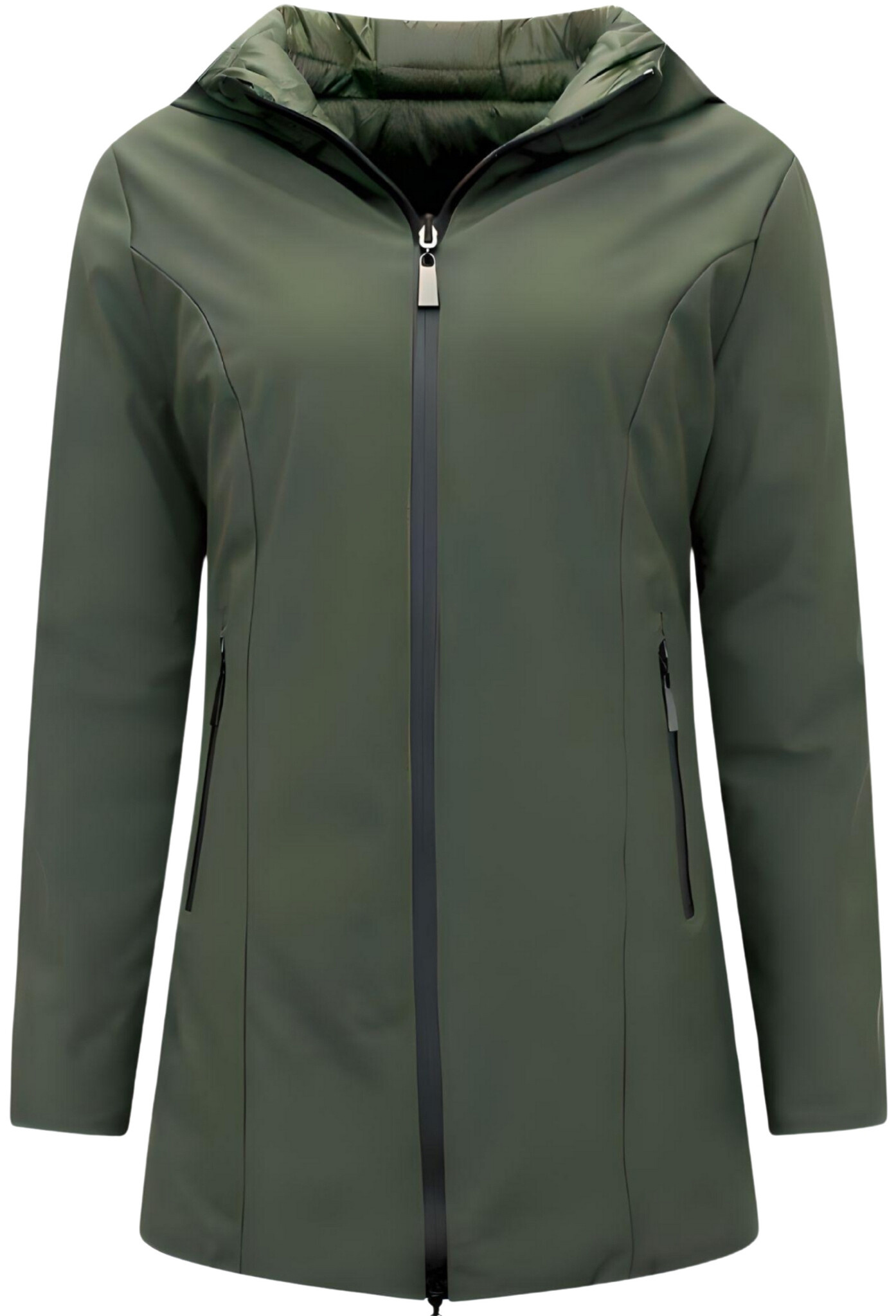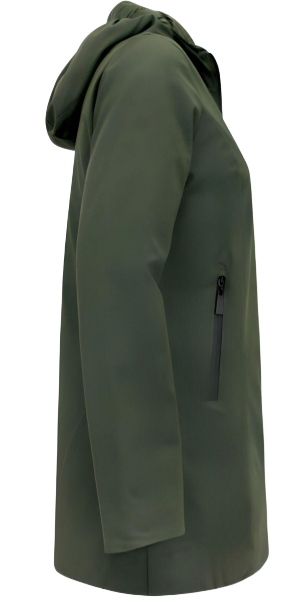 - Das Modell hat zwei Jackentaschen und eine Innentasche